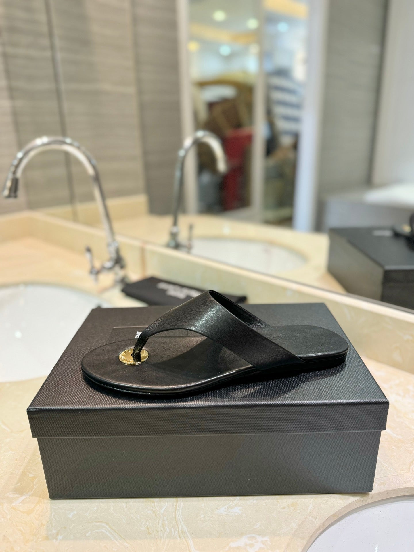 SL KOUROS THONG SANDALS BLACK CALFSKIN