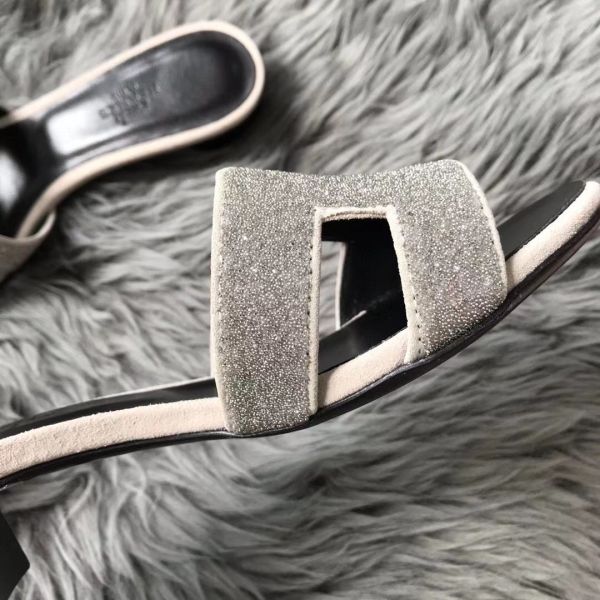 HERM Oasis Sandals In White Suede with Rhinestone