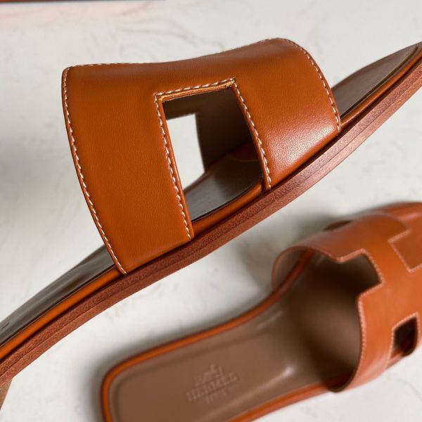 HERM Oran Slide Sandals In Gold Swift Calfskin