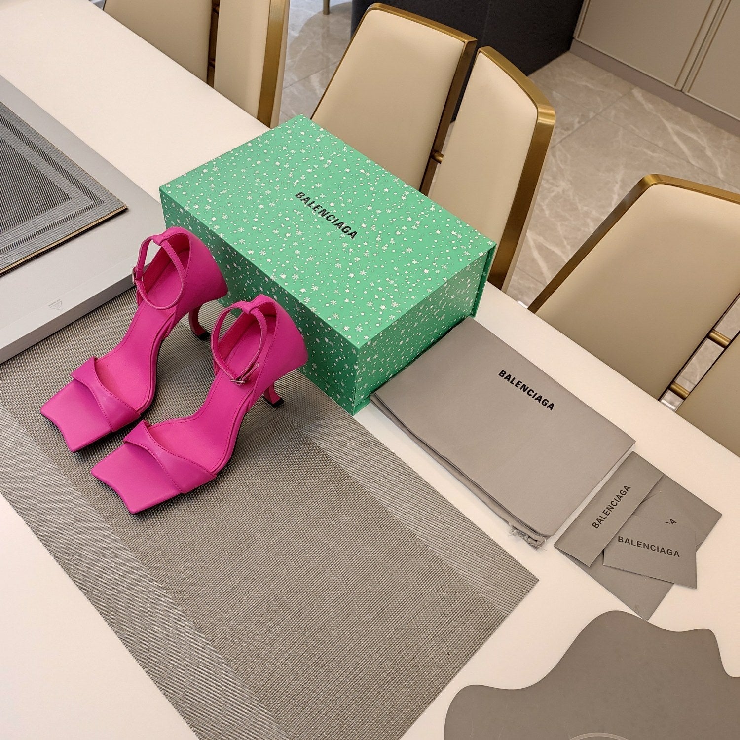 • OPEN-TOE CURVED HIGH HEEL SANDALS IN DEEP PINK SMOOTH CALFSKIN
