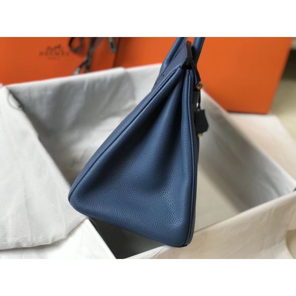 HERM Birkin 35cm Bag In Blue Agate Clemence Leather GHW