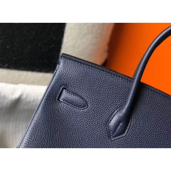 HERM Birkin 35cm Bag In Dark Blue Clemence Leather GHW