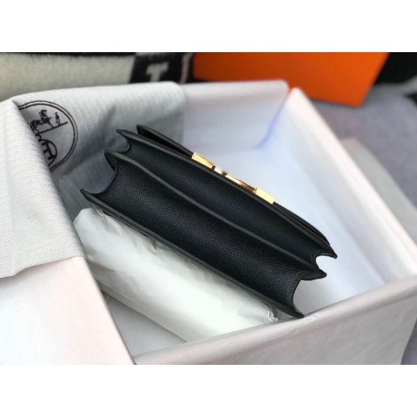 HERM Black Constance MM 24cm Epsom Leather Bag