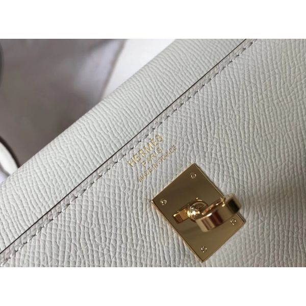 HERM Kelly 25cm Sellier Bag In White Epsom Leather