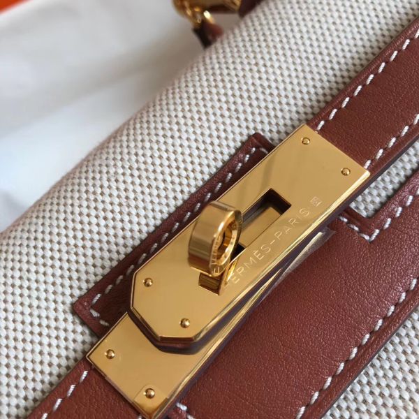 HERM Kelly 28cm Bag In Canvas With Barenia Leather