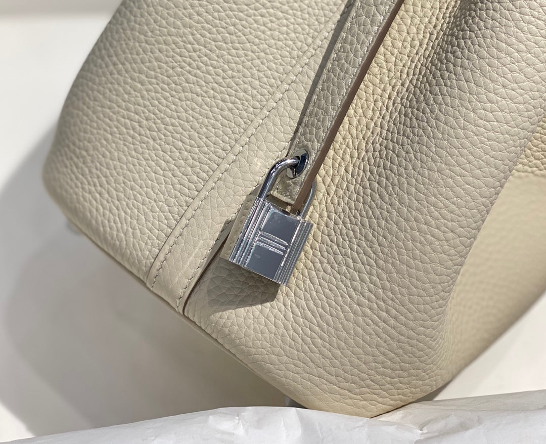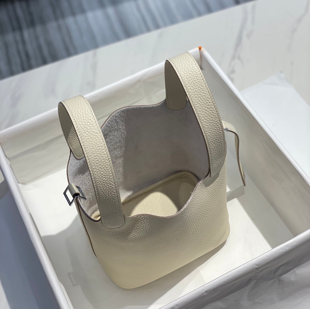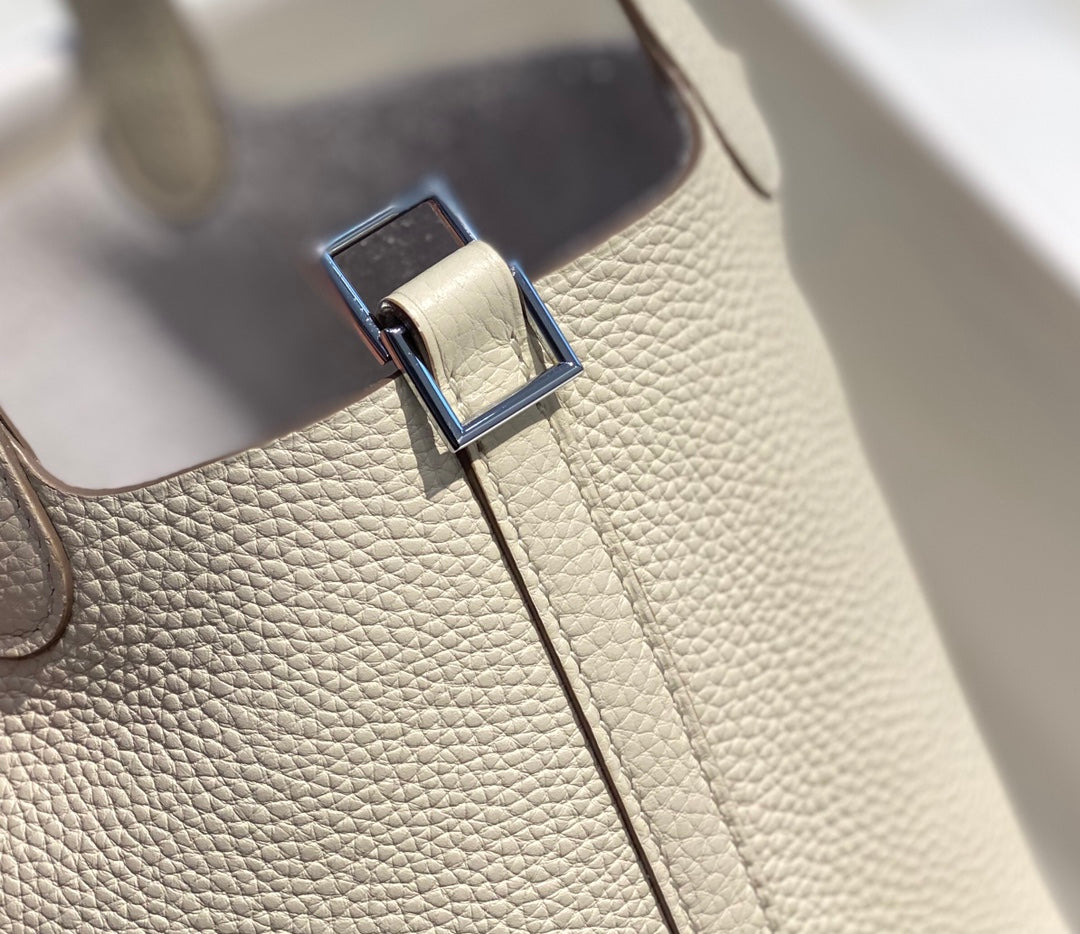 - Color: ivory color, silver hardware