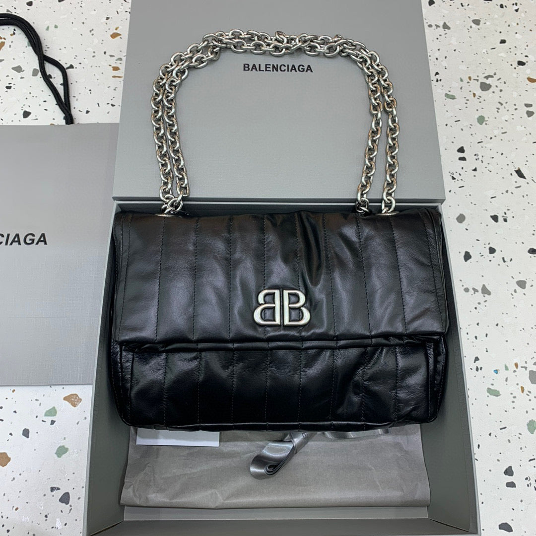 BB SOFT FLAP BAG 36 IN BLACK PEACH CALFSKIN SILVER HARDWARE