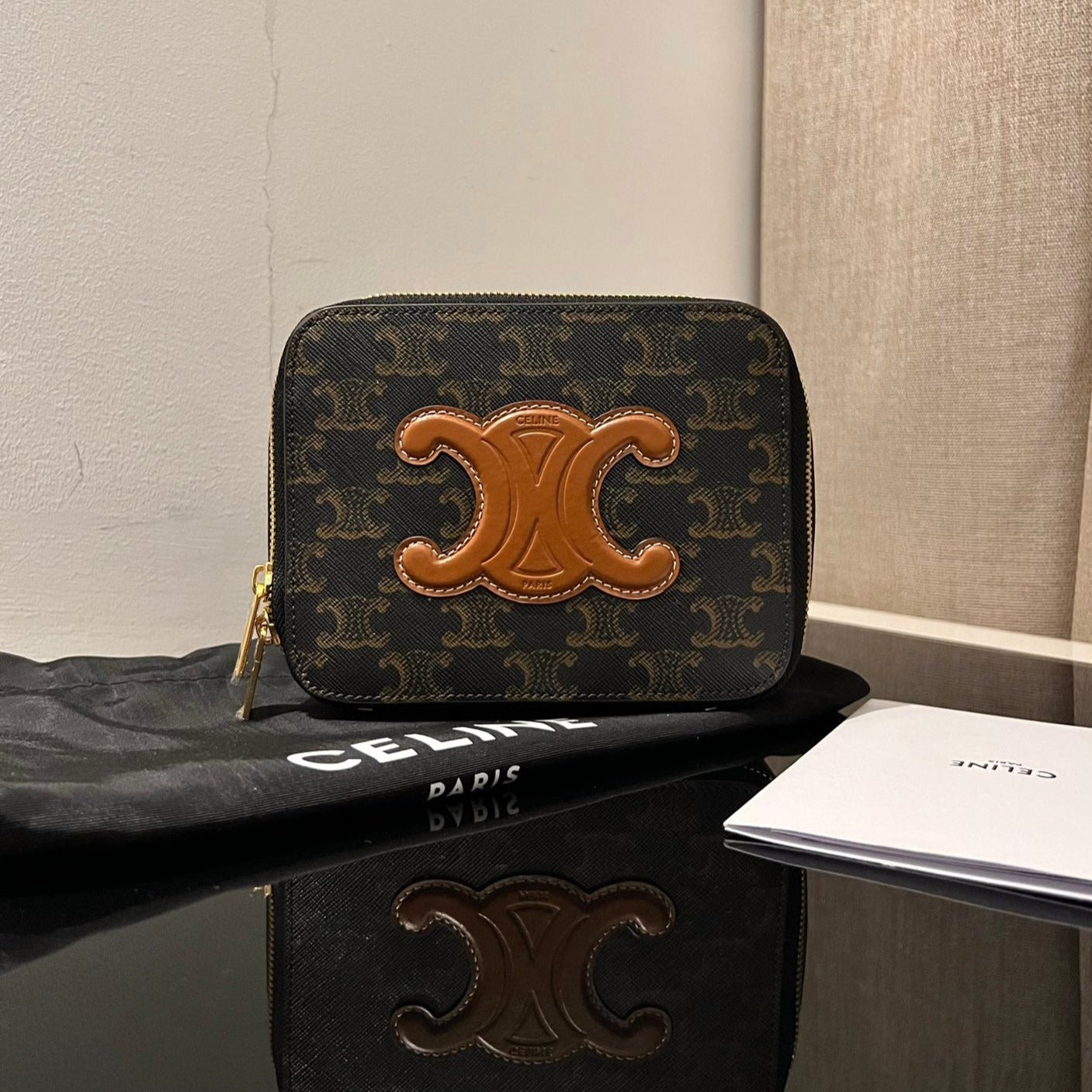 EXTRA POCKET L19 IN DARK BROWN CALFSKIN WITH GOLD HARDWARE