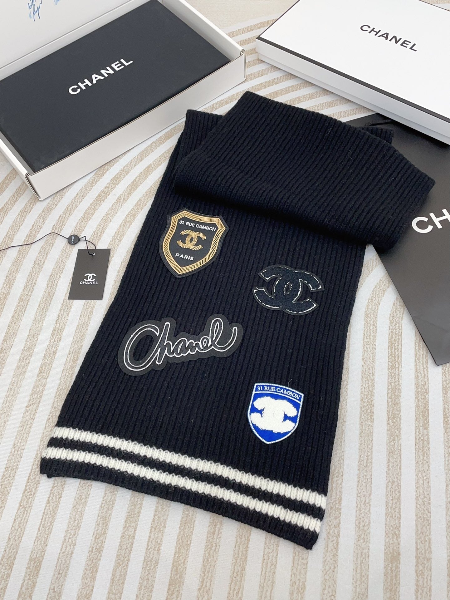 - SCARF 180 CM IN BLACK PURE CASHMERE WITH STICKER 389998
