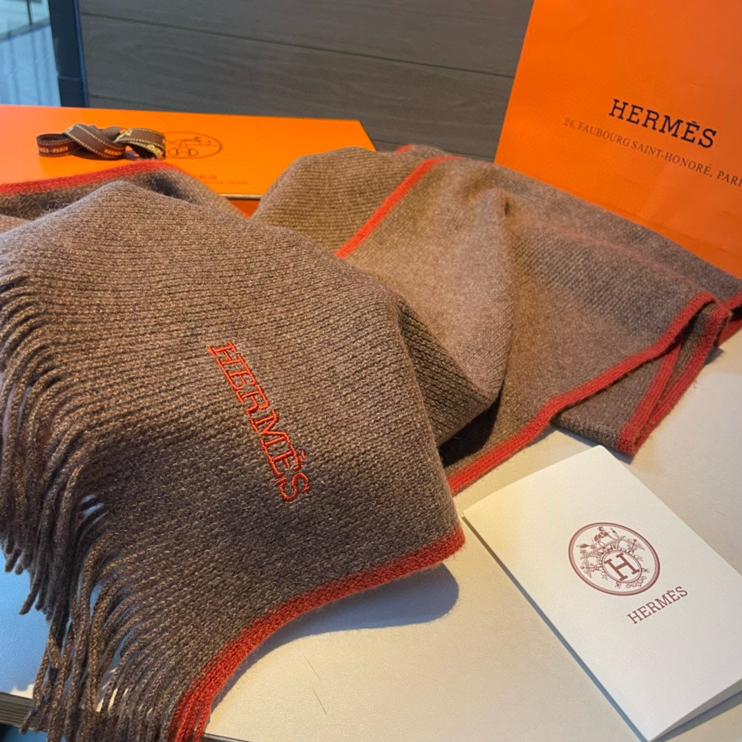 SCARF 180 CM IN DARK BROWN MIX RED CASHMERE 376516