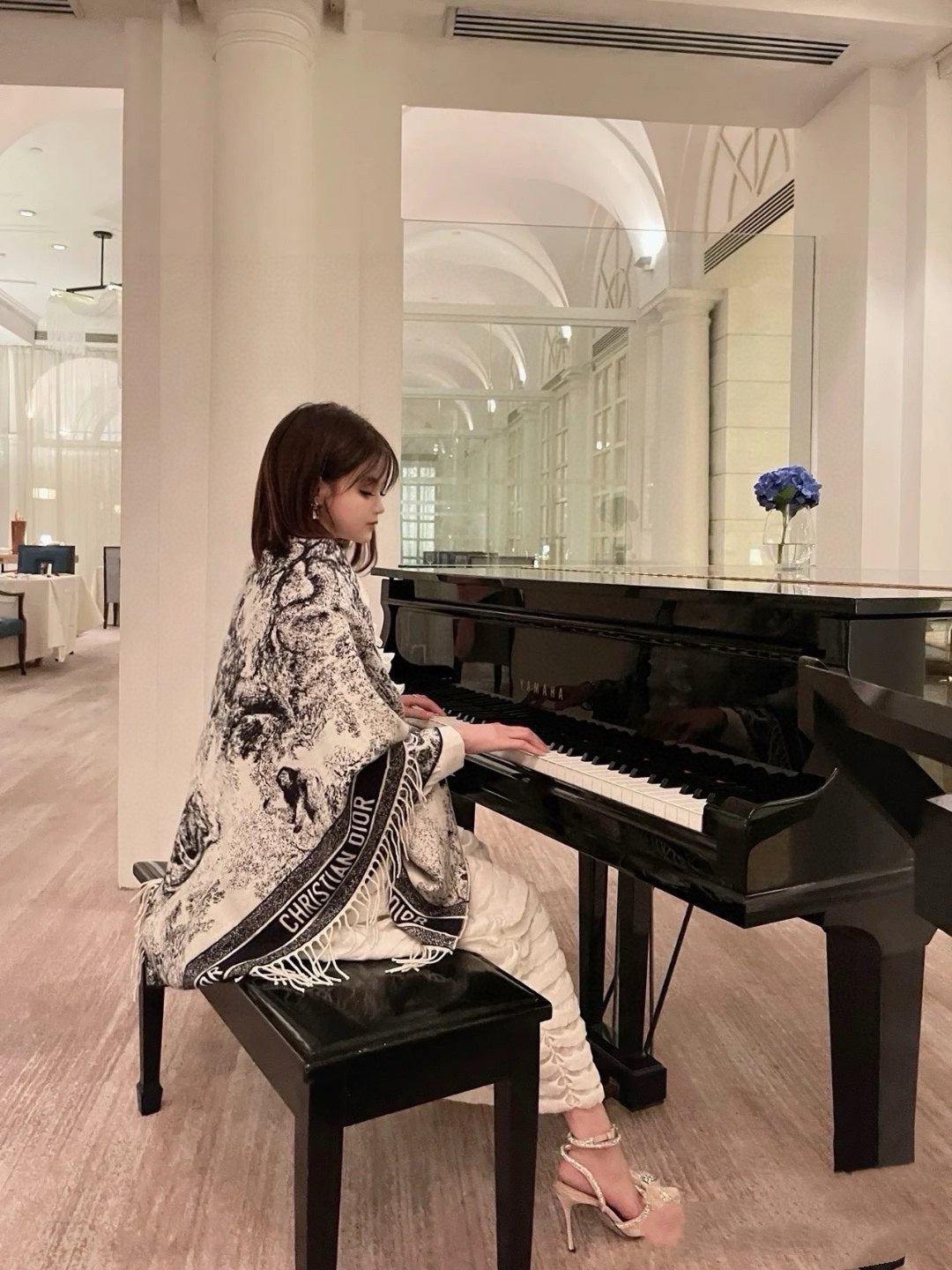 SQUARE SCARF 140 CM IN BLACK MIX WHITE MONOGRAM CASHMERE AND WOOL 416918