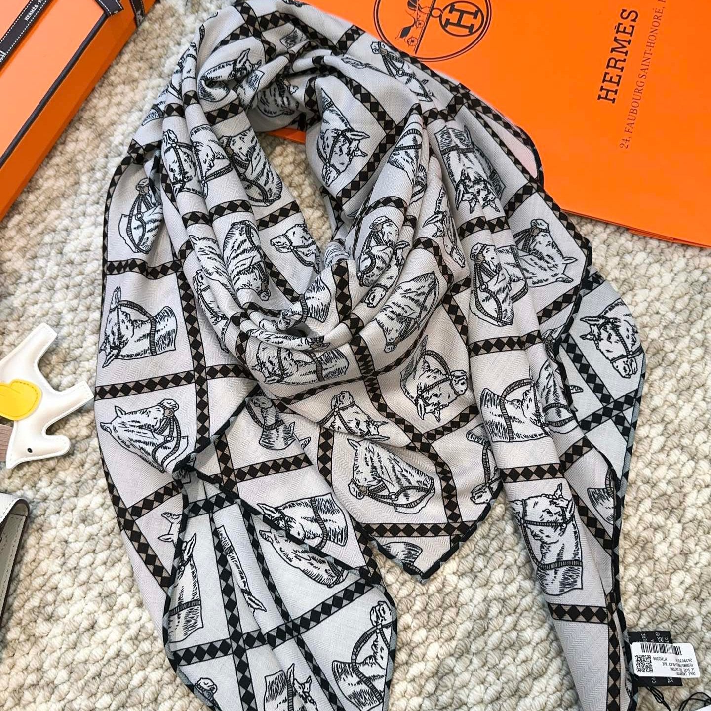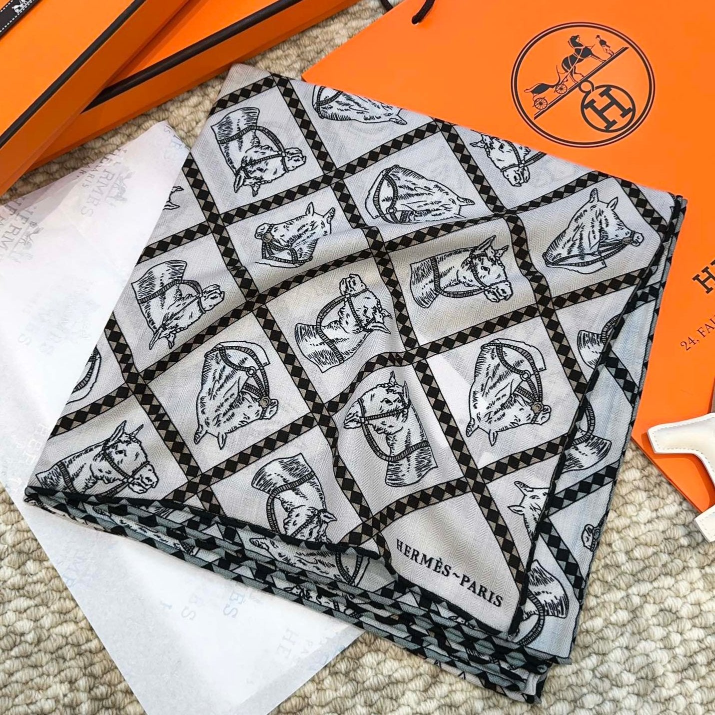 MONOGRAM SCARF 210 CM IN BLACK MIX WHITE CASHMERE 398283