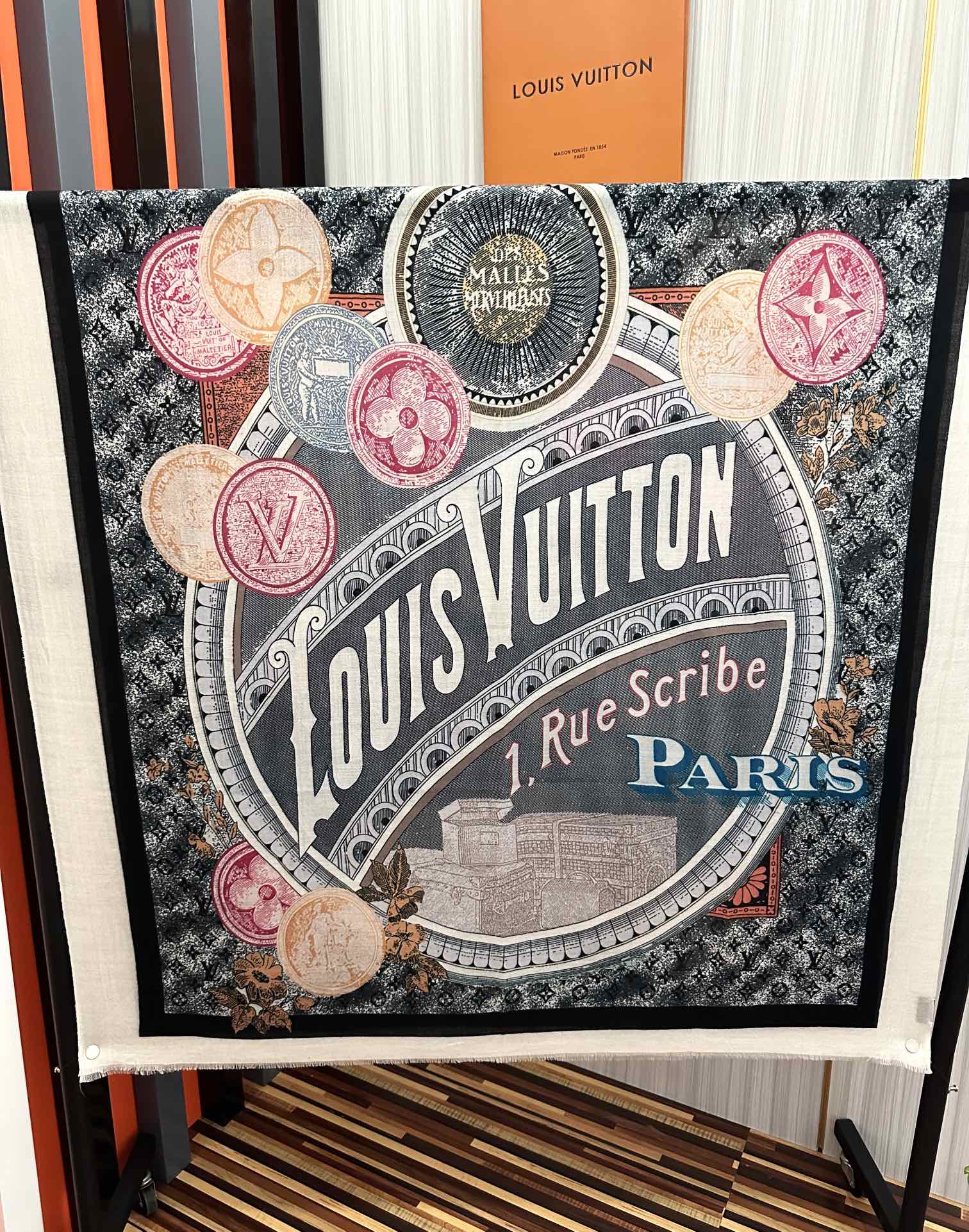 MONOGRAM SQUARE SCARF 140 CM IN BLACK MIX WHITE CASHMERE AND SILK 413742