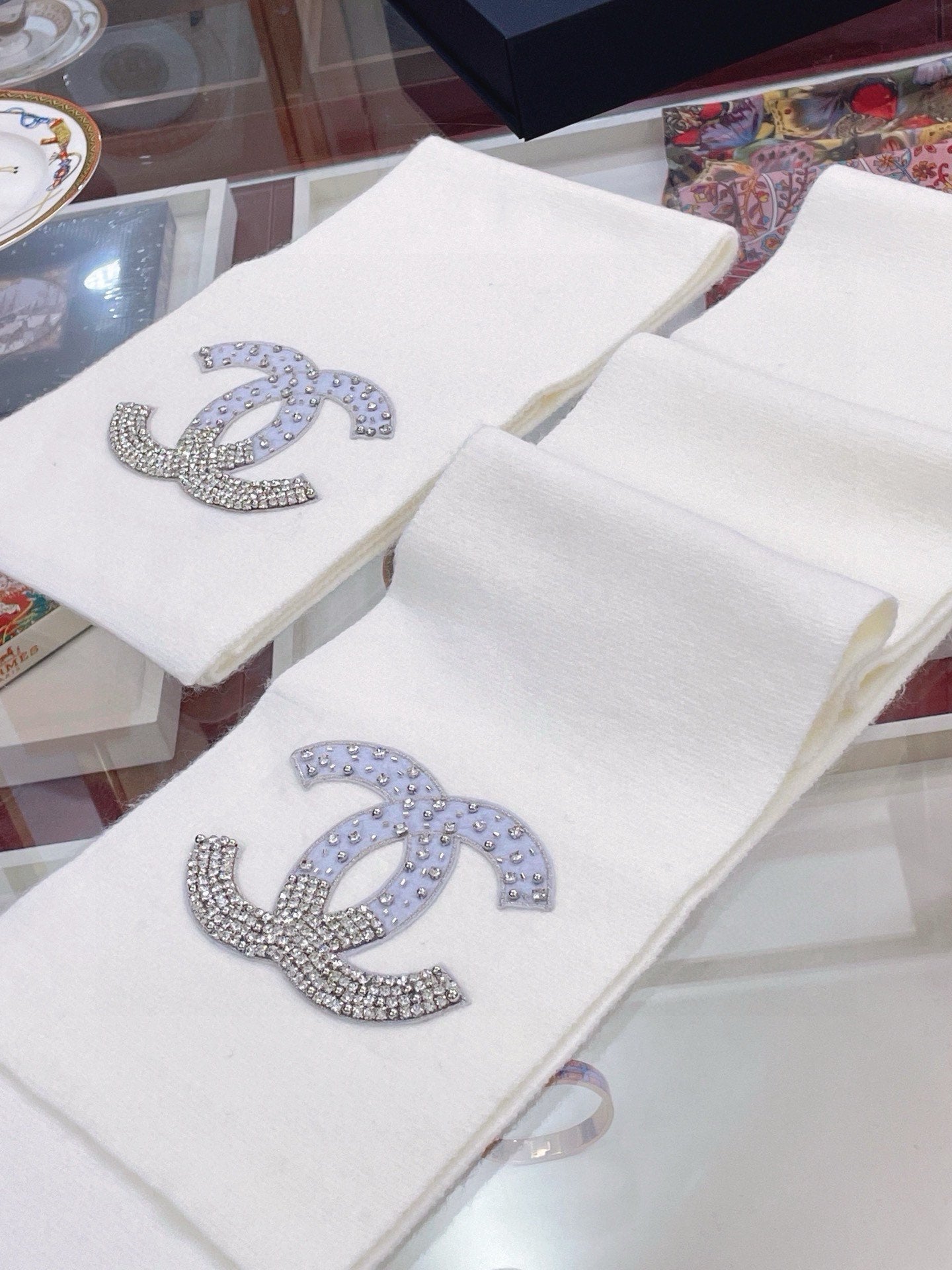 SCARF 180 CM IN WHITE CASHMERE WITH RHINSTONES 393227