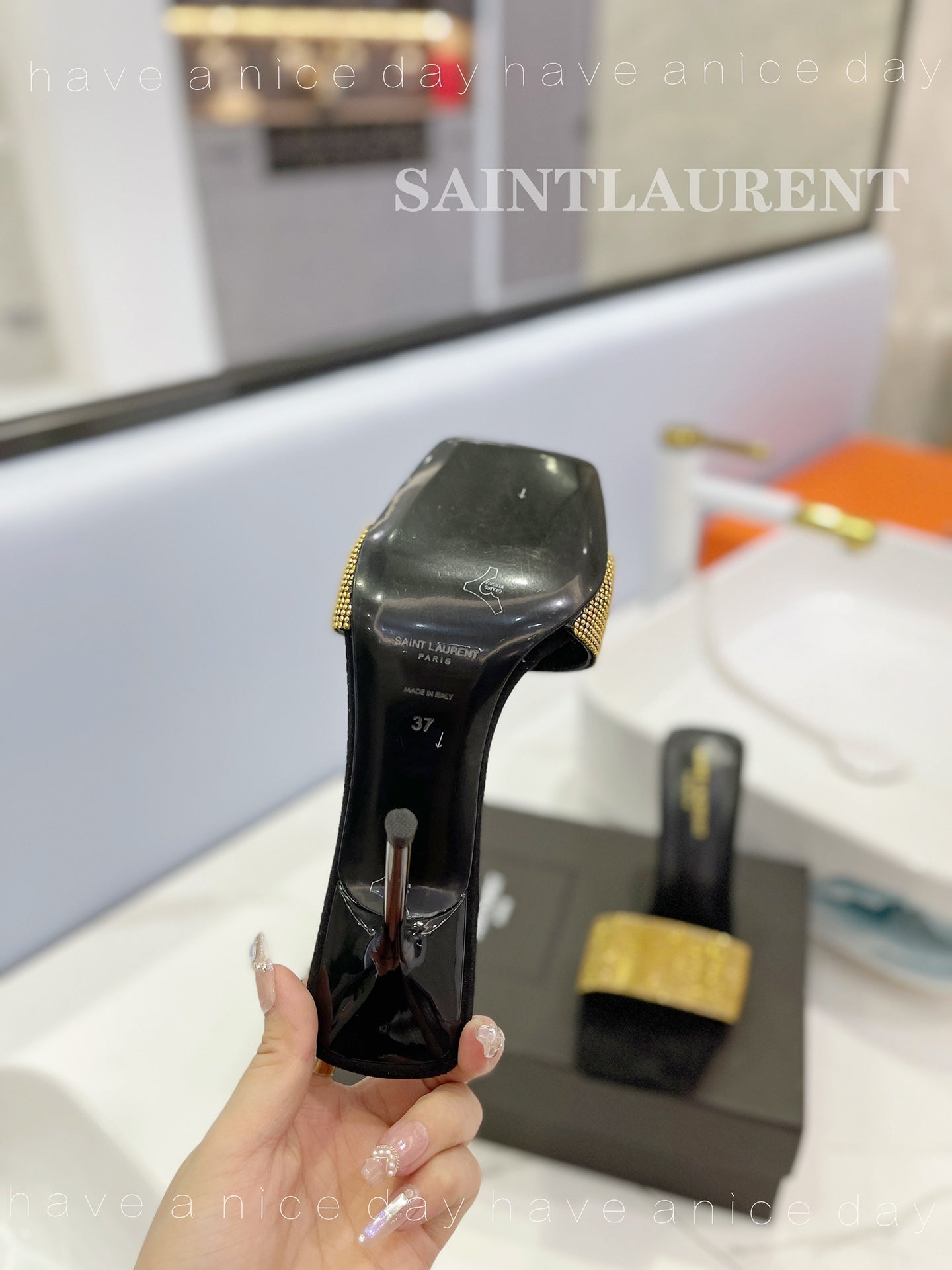 • SL LUCKY GOLD CRYSTAL HIGH HEELS BLACK CALFSKIN