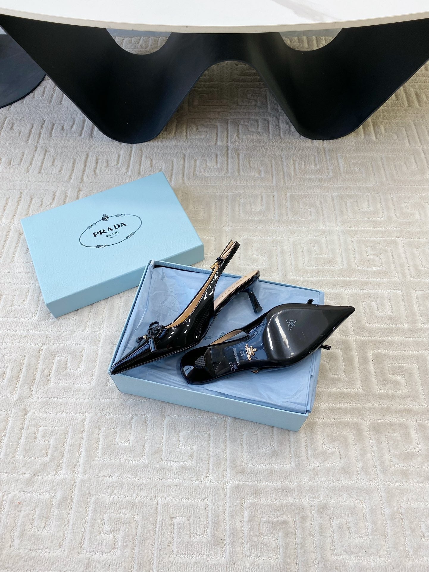 • SLINGBACK PUMPS ATTACHED BOW IN BLACK GLOSSY CALFSKIN