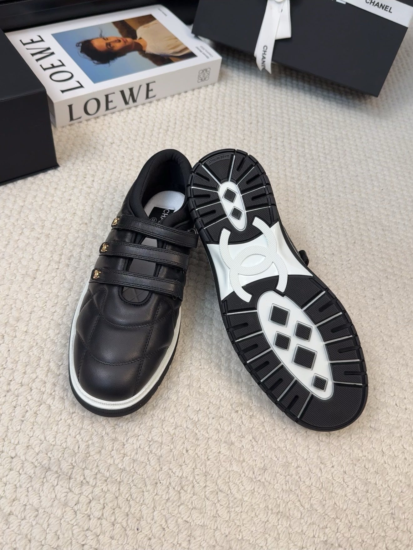• SNEAKERS WITH THREE STRAPS IN BLACK CALFSKIN