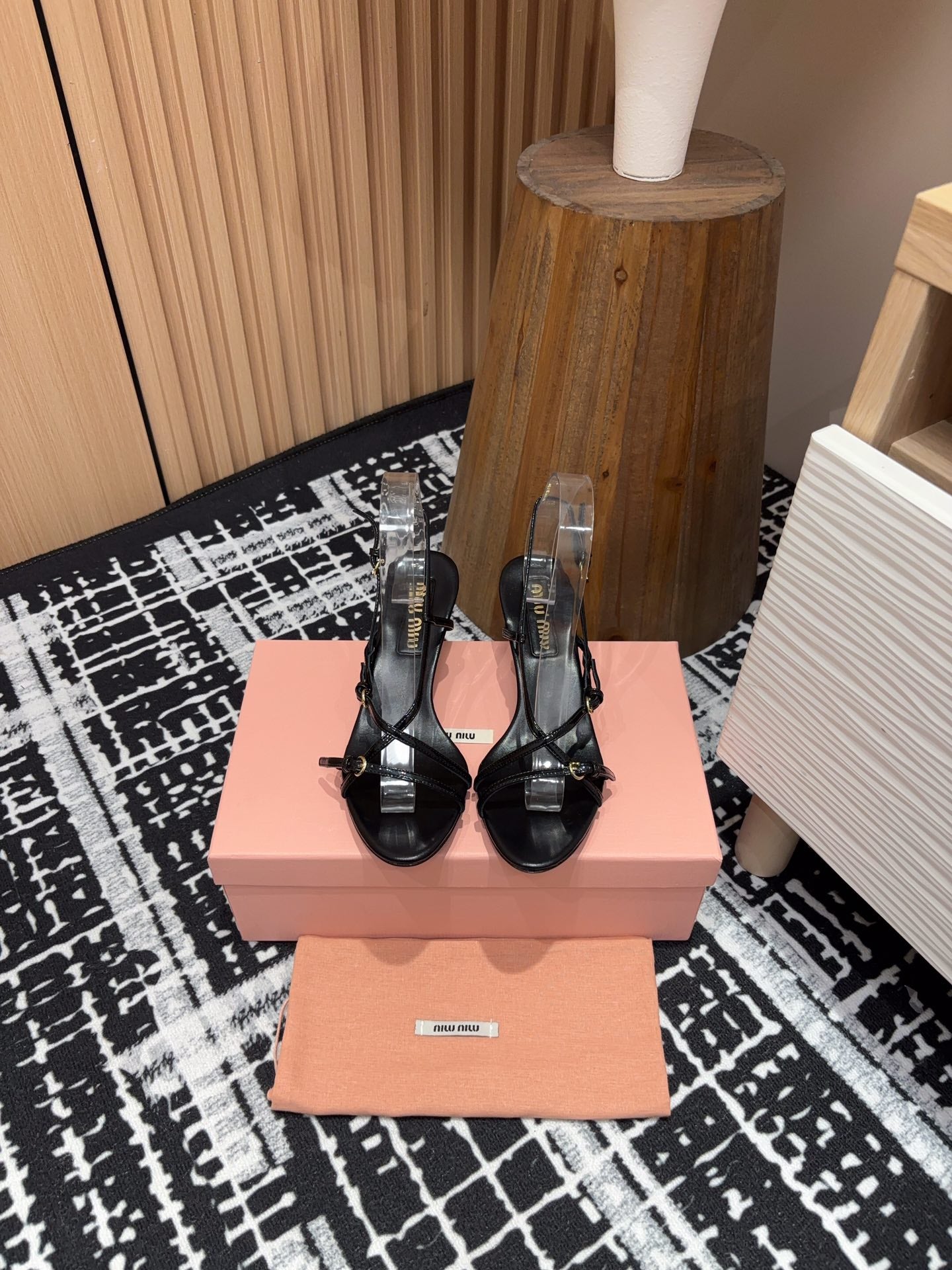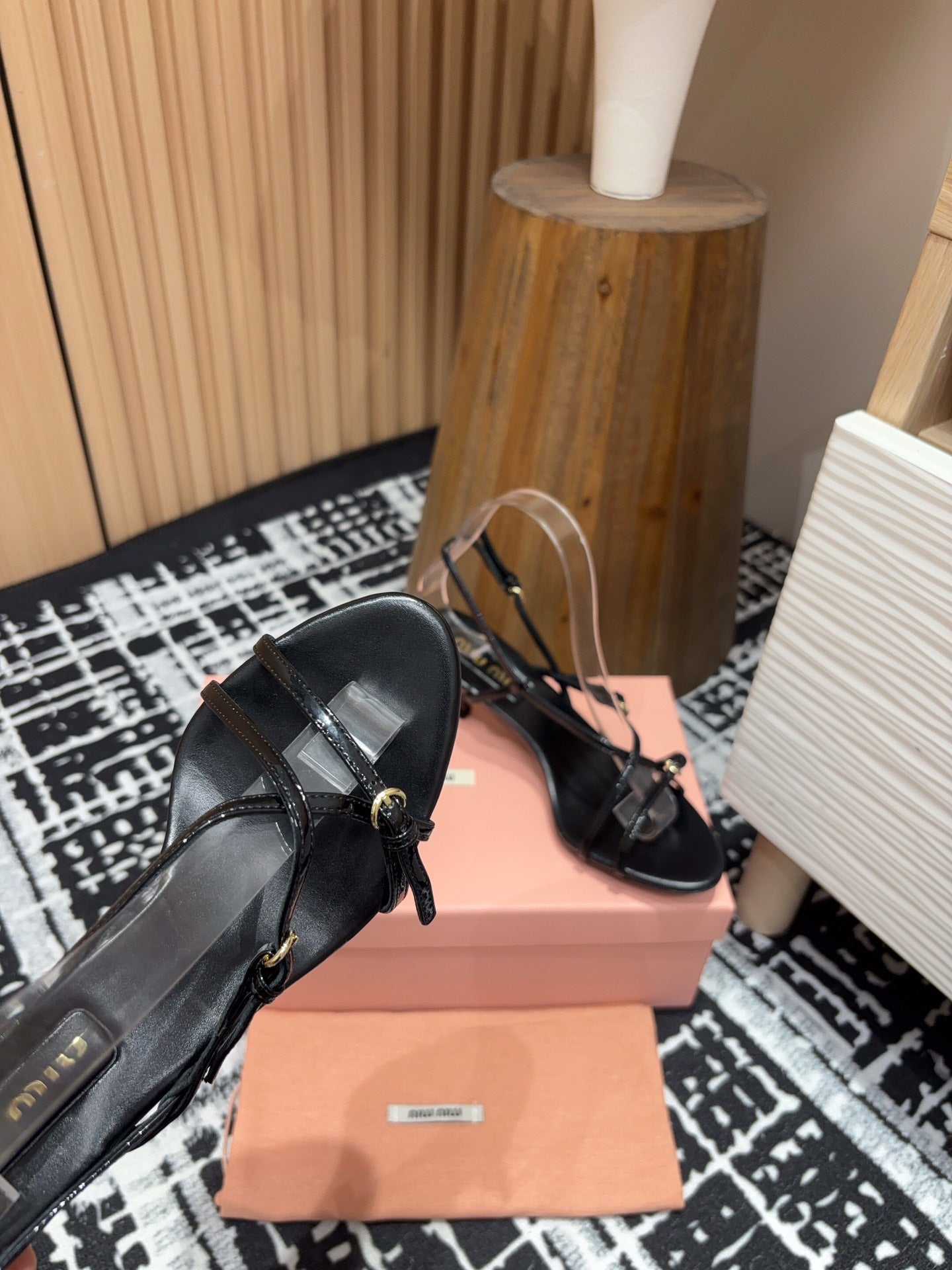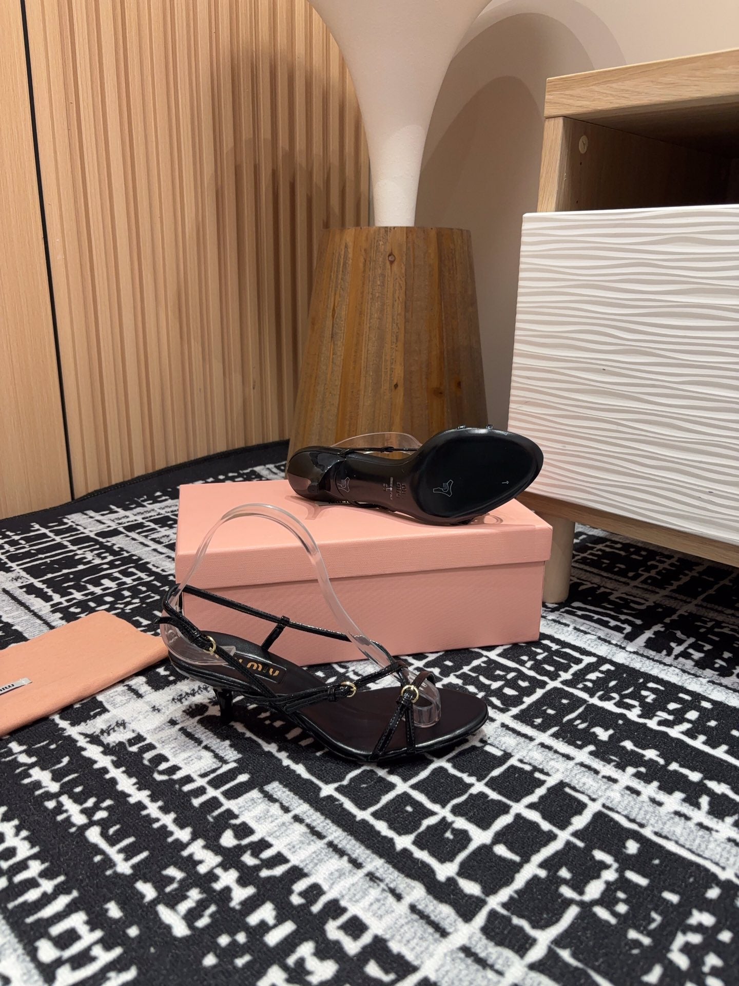 • STRAP HIGH HEEL SANDALS IN BLACK SHINY LAMBSKIN