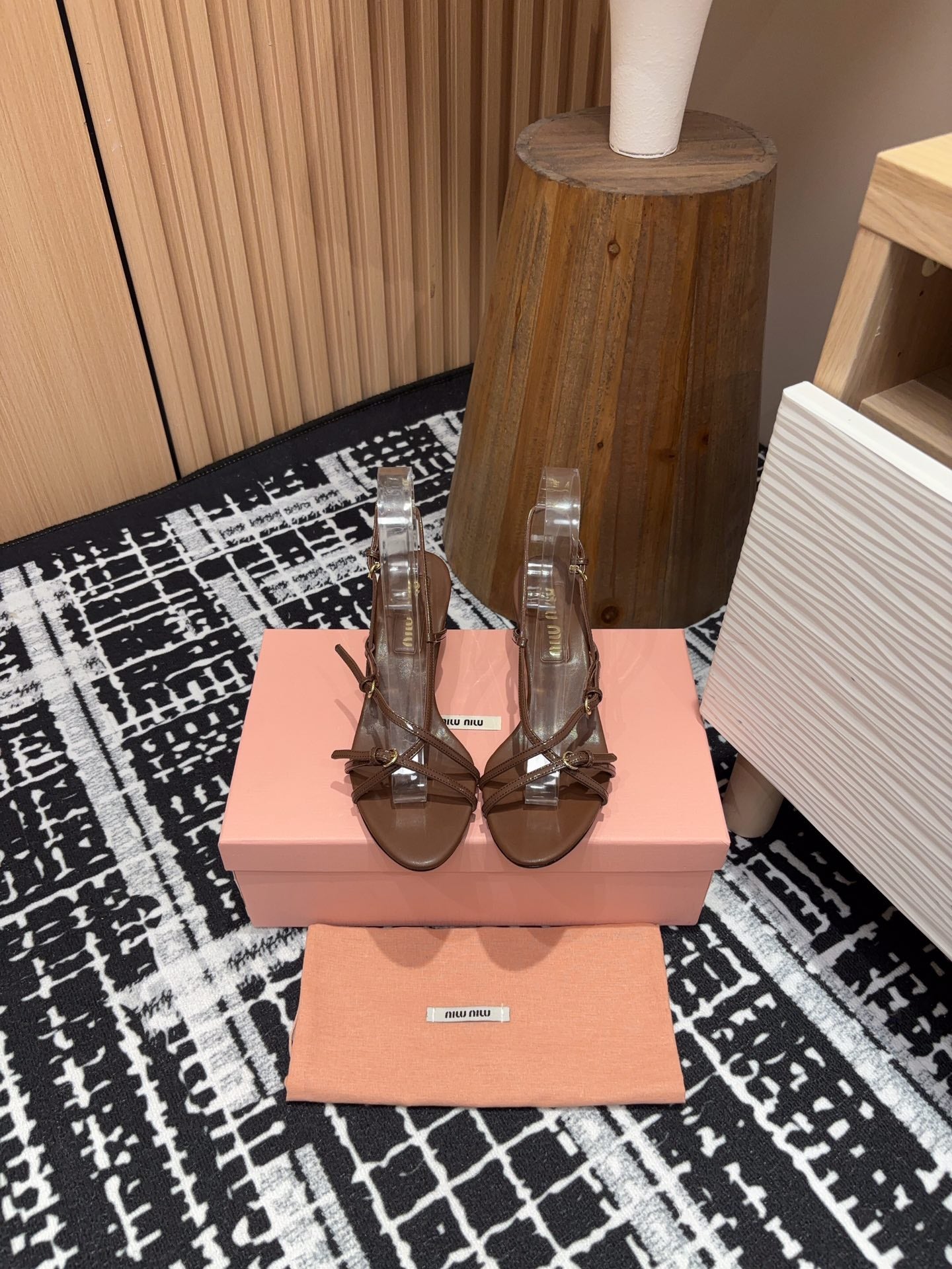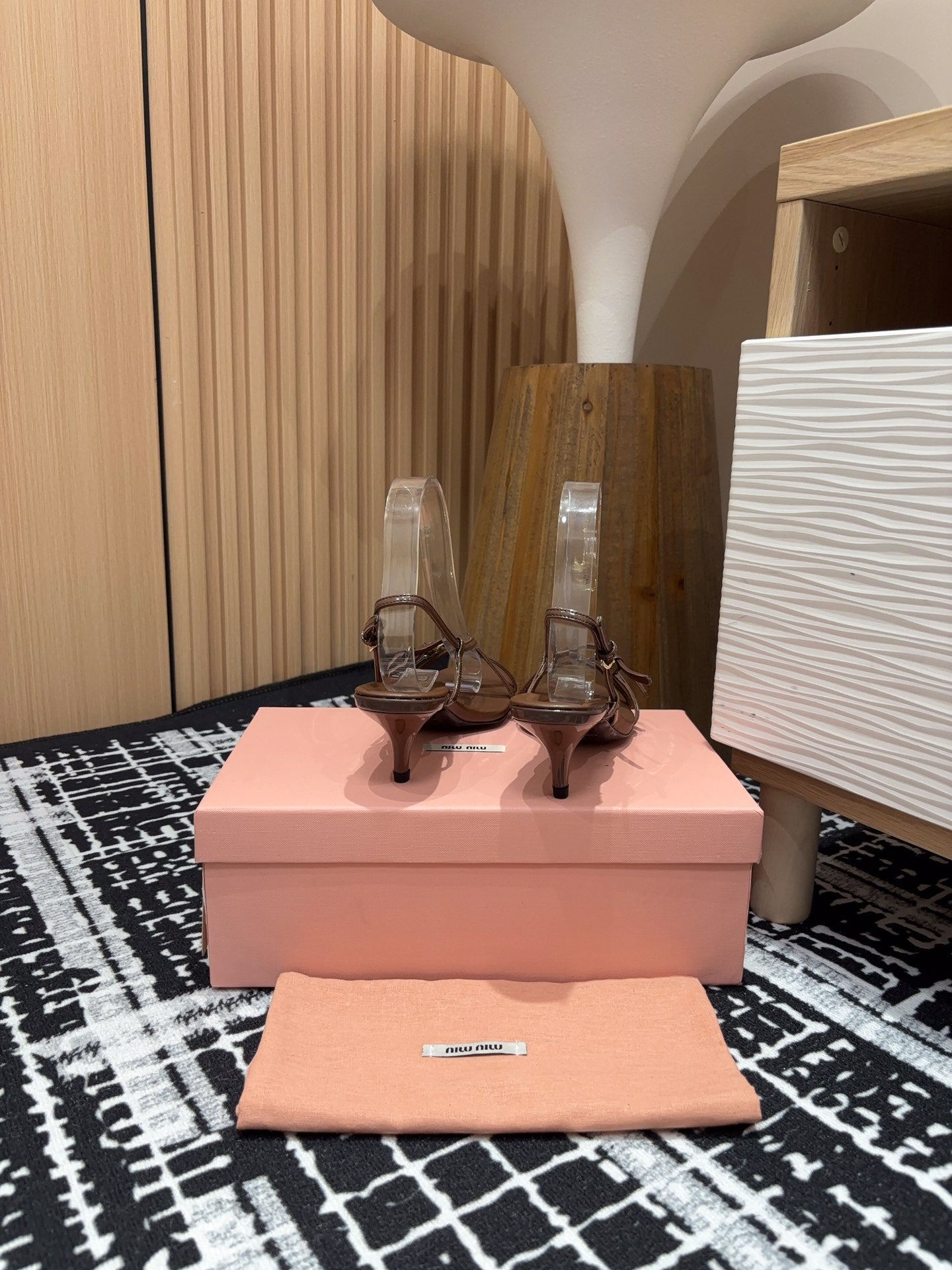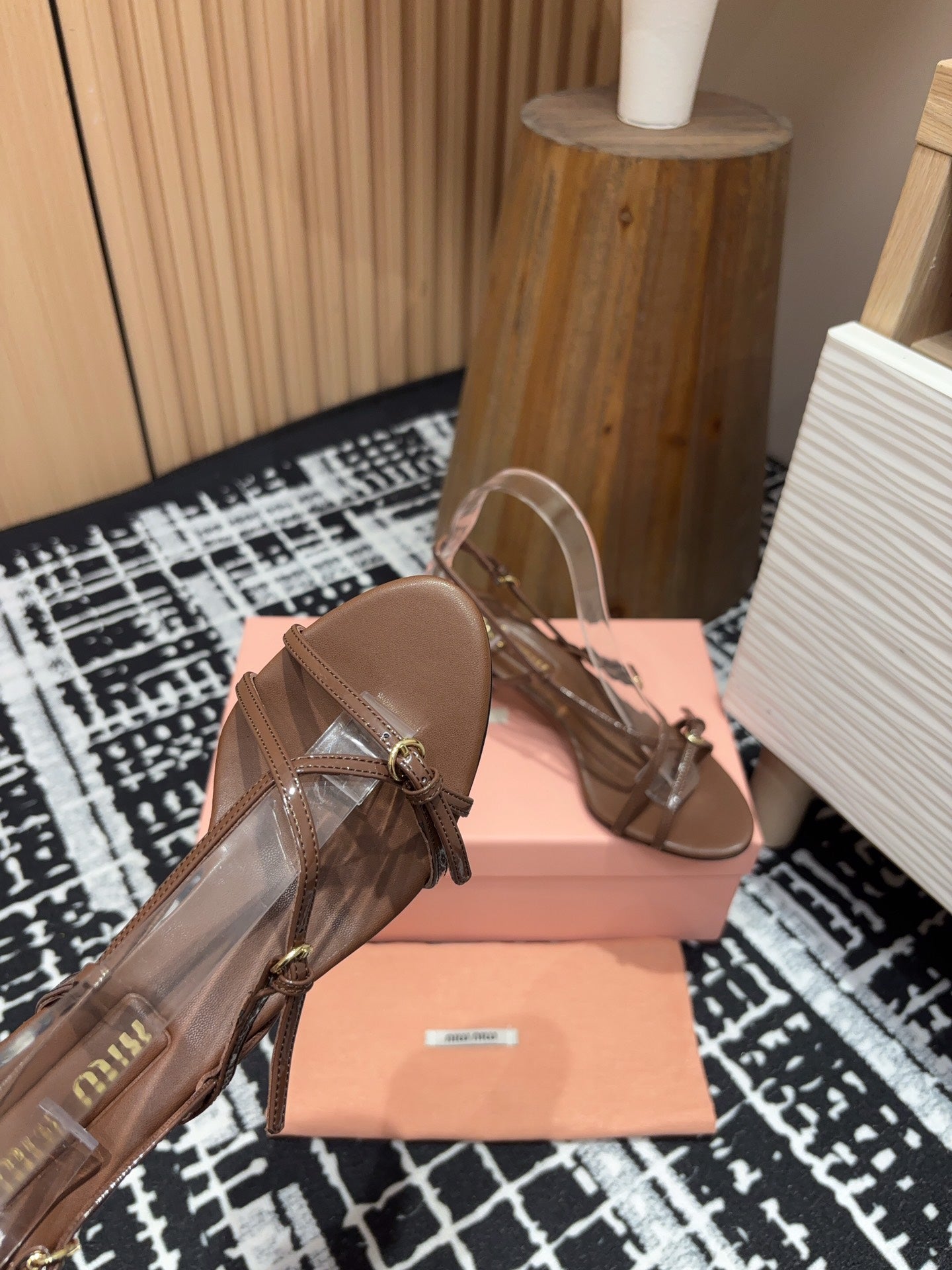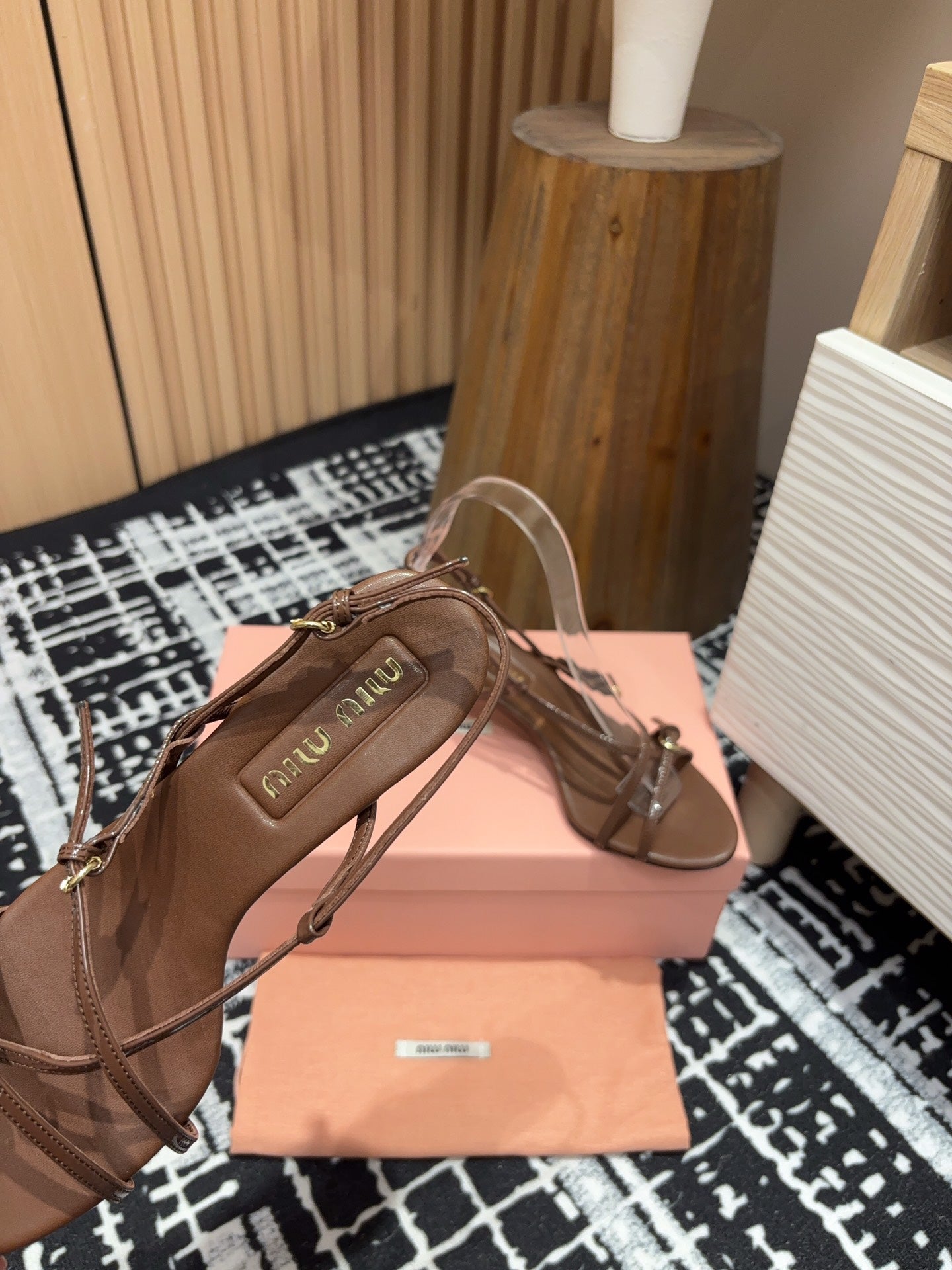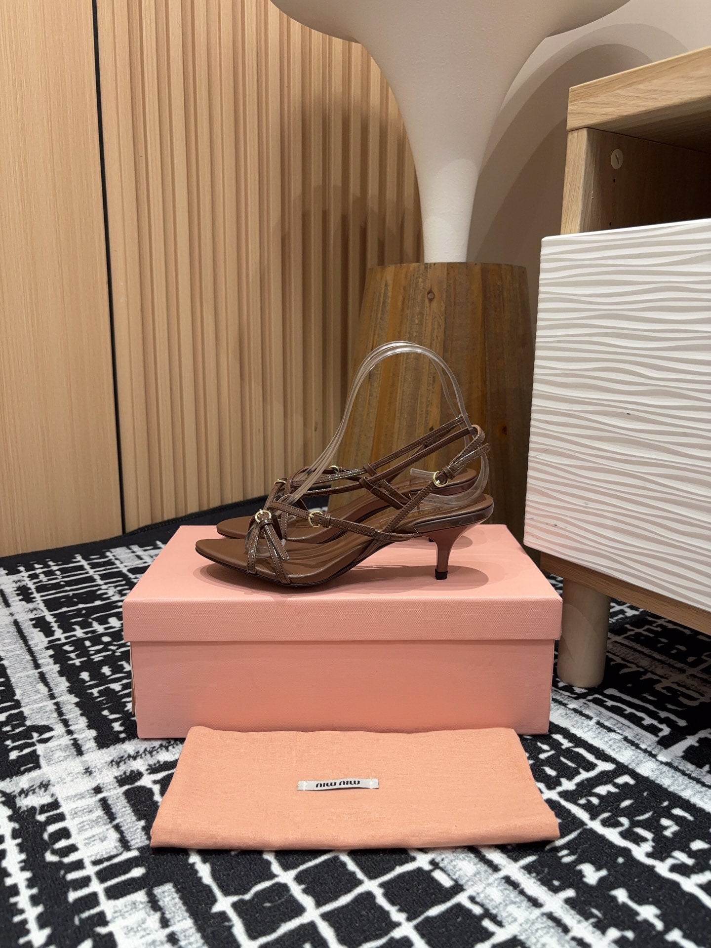 STRAP HIGH HEEL SANDALS IN CHOCOLATE SHINY LAMBSKIN