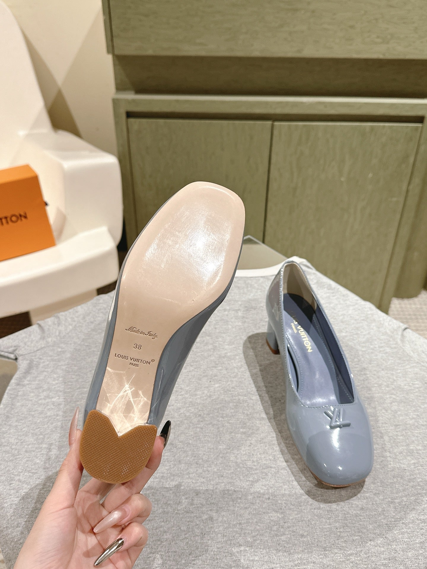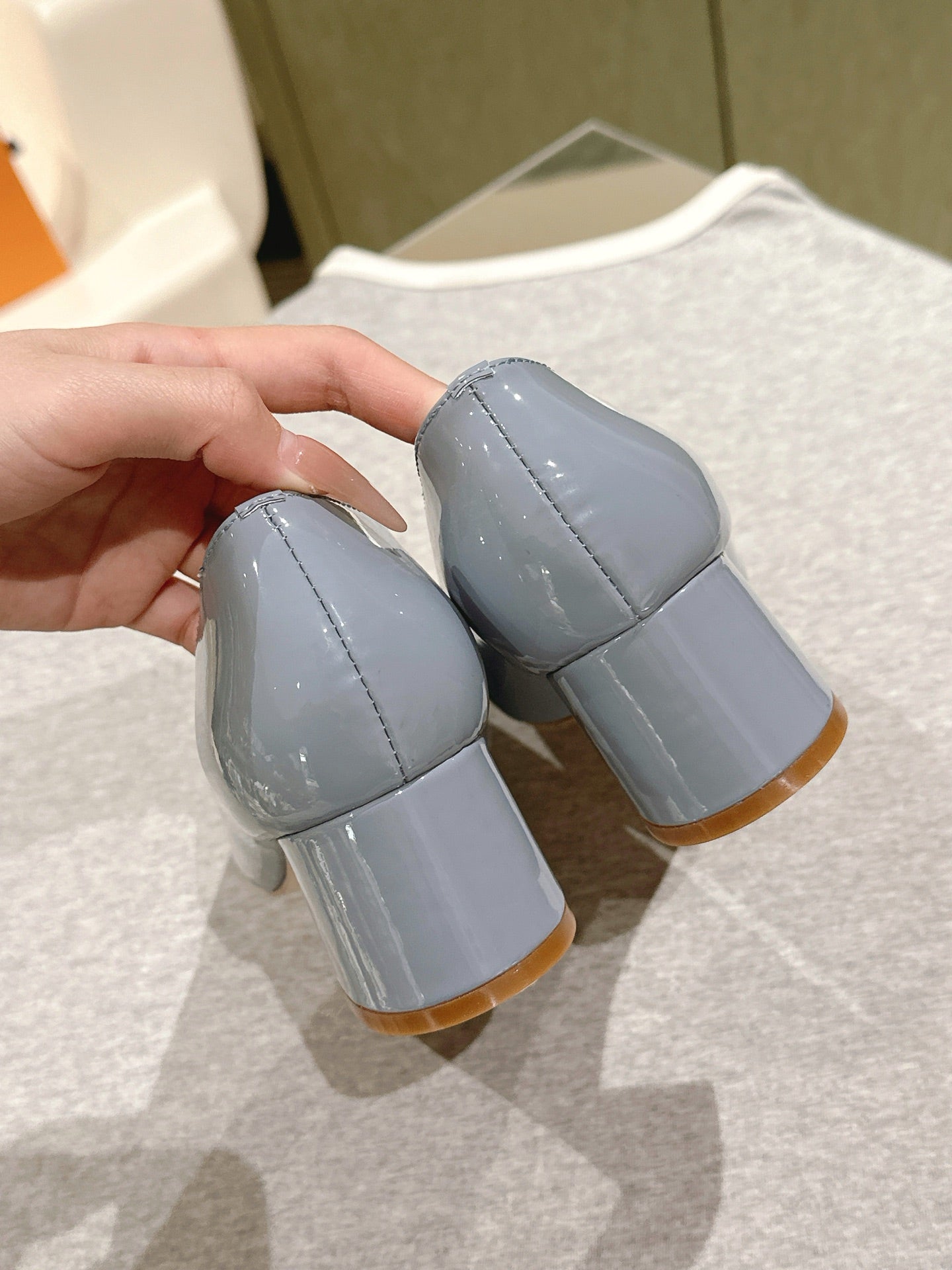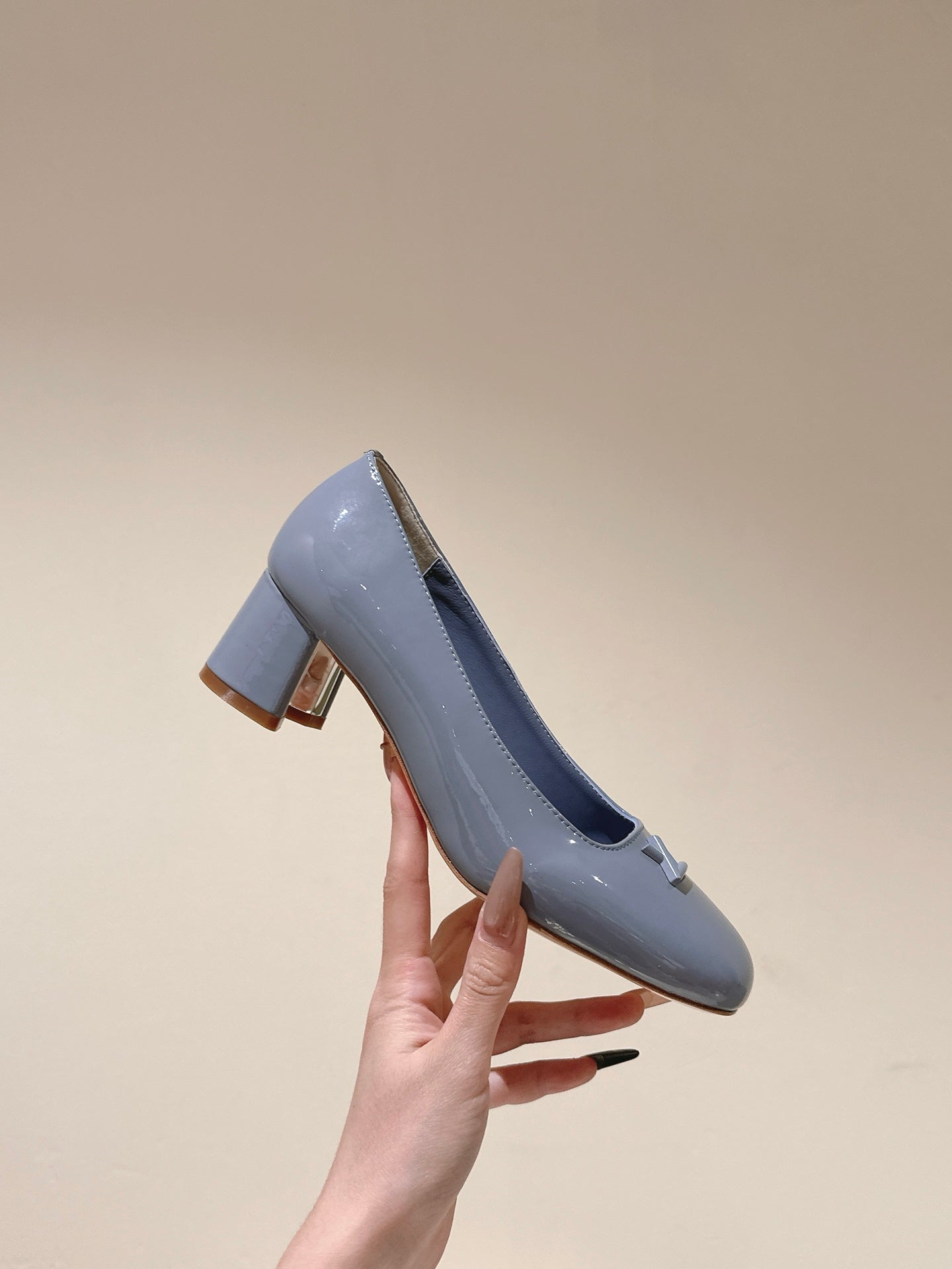• SWING HIGH PUMP 55 MM IN ICE BLUE PATENT CALFSKIN