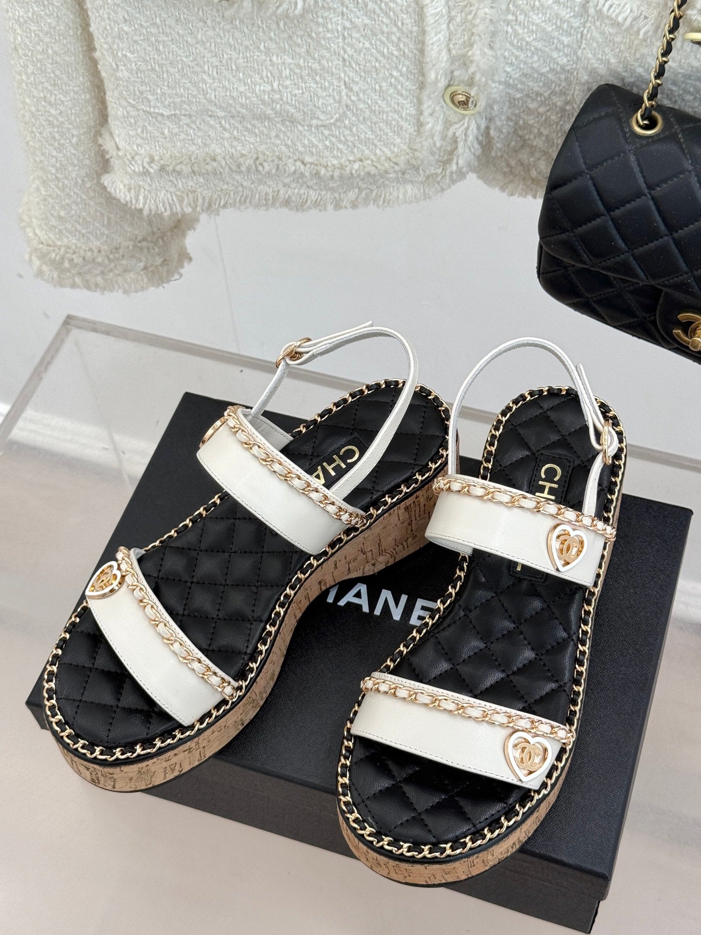 THICK-SOLED CHAIN HEART SANDAL IN WHITE LAMBSKIN