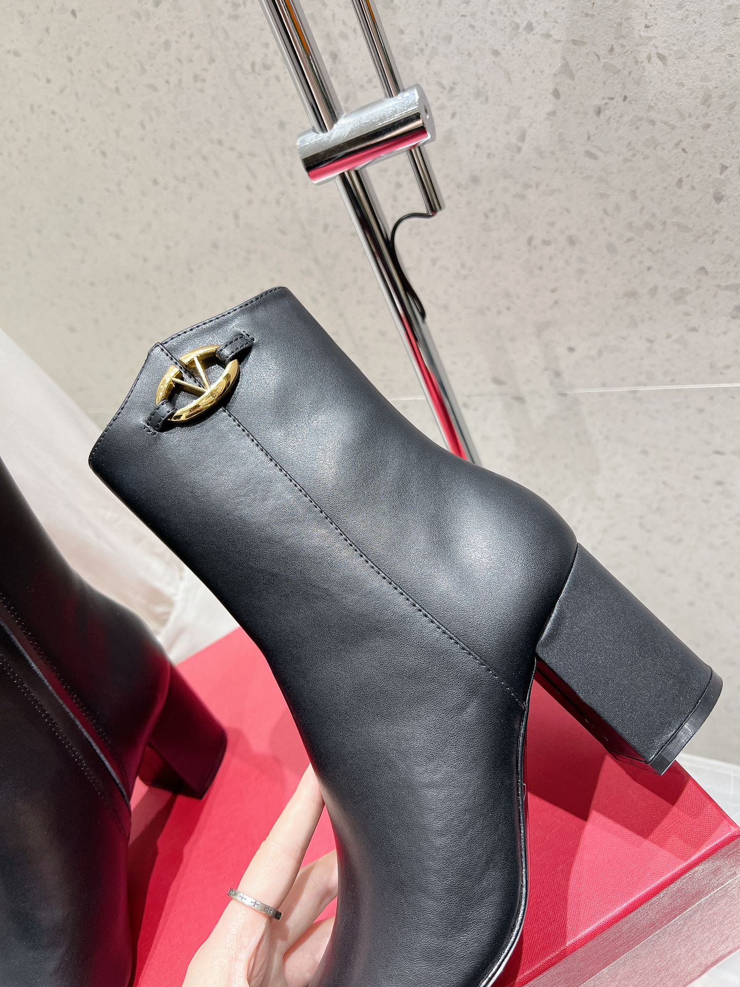 • VLOGO SIGNATURE WHITE CALFSKIN ANKLE BOOT 75 MM