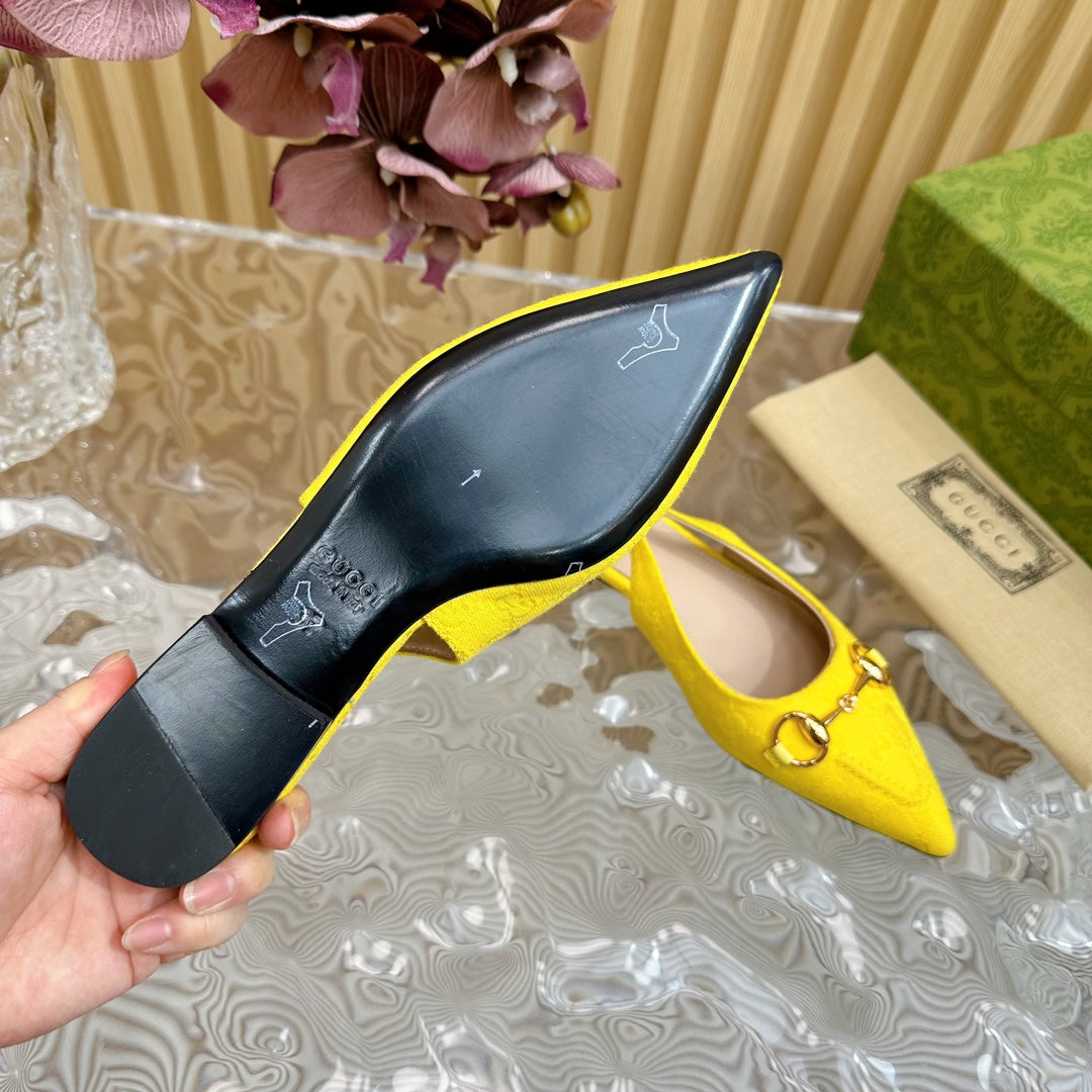WOMEN'S SLIDE SANDAL WITH GG CROSS LEMON CANVAS
