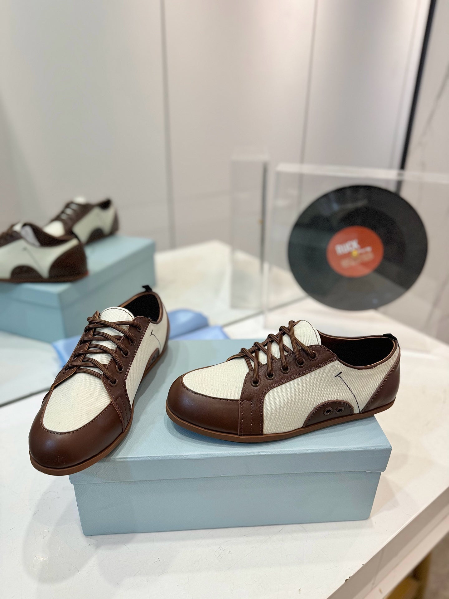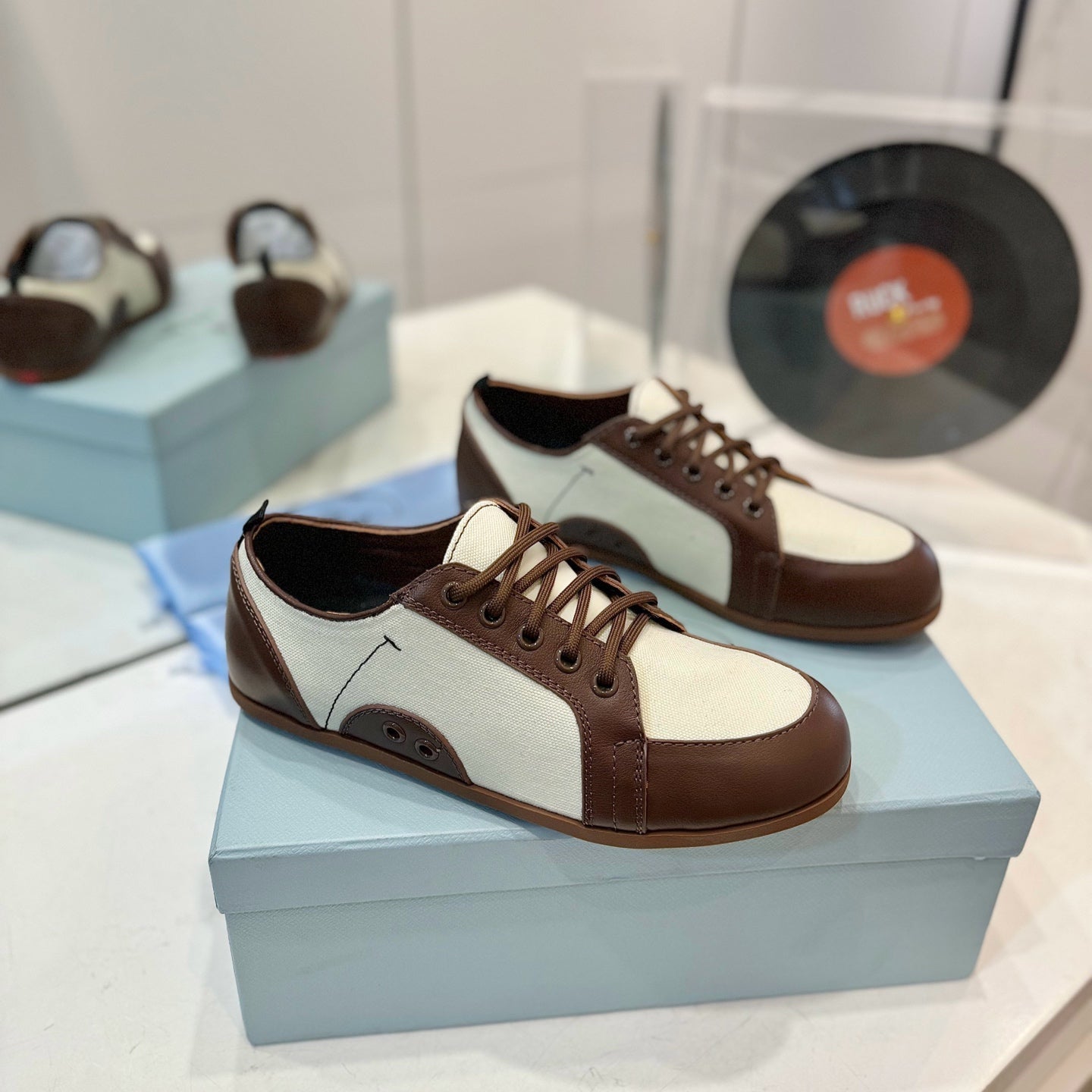 SNEAKERS IN BROWN LAMBSKIN AND WHITE CANVAS