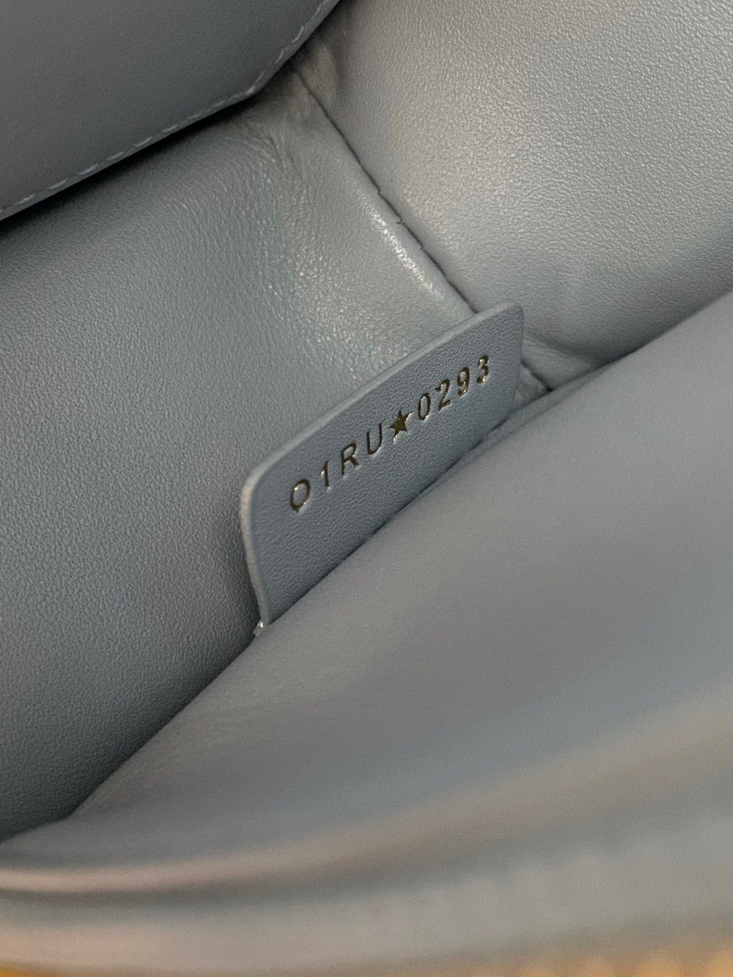 MEDIUM FLAP BAG 22 IN BABY BLUE QUILTED ALLOVER CALFSKIN