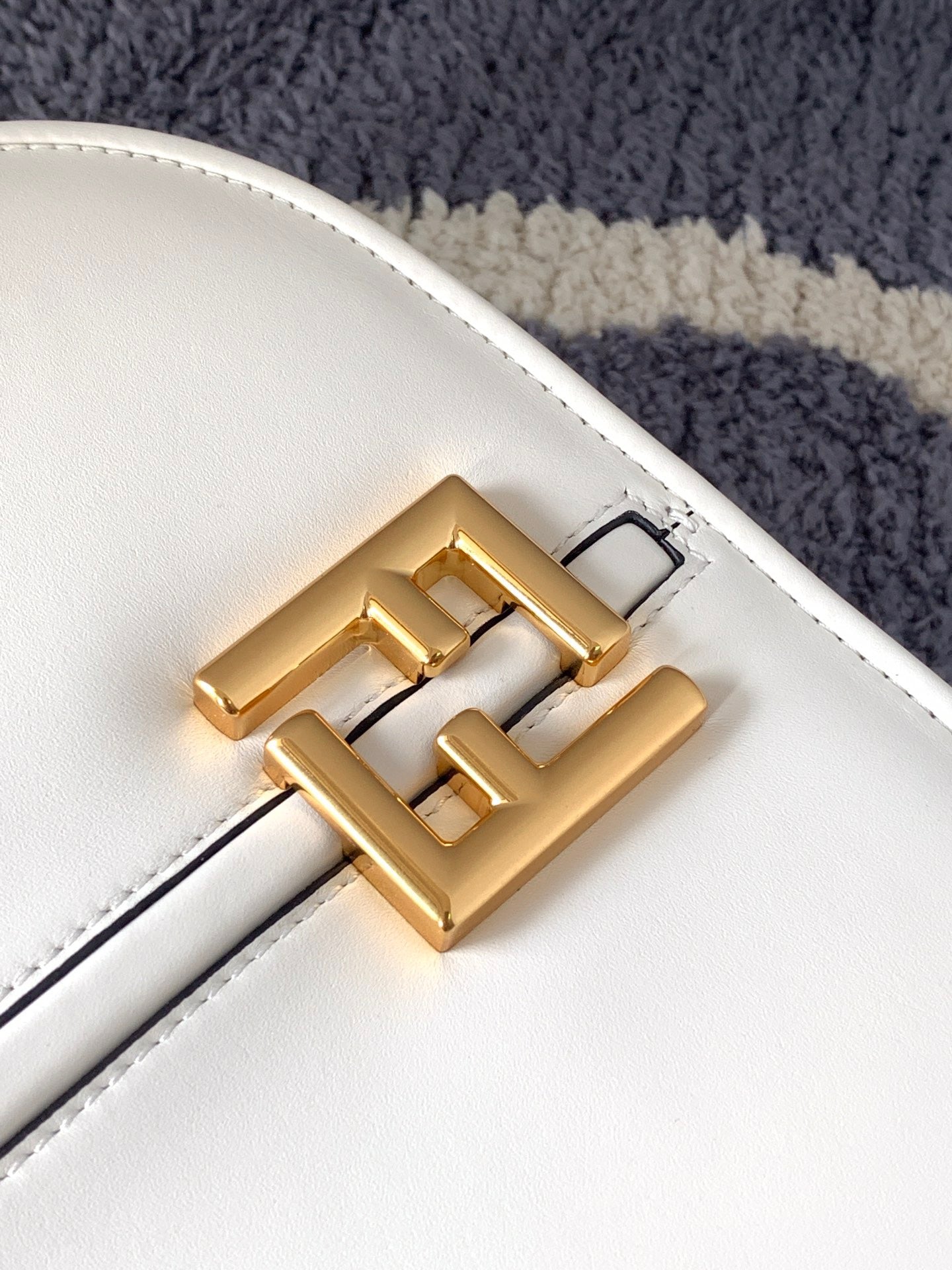 Fend Baguette 24 Bag With FF Motif Beige Leather Ghw