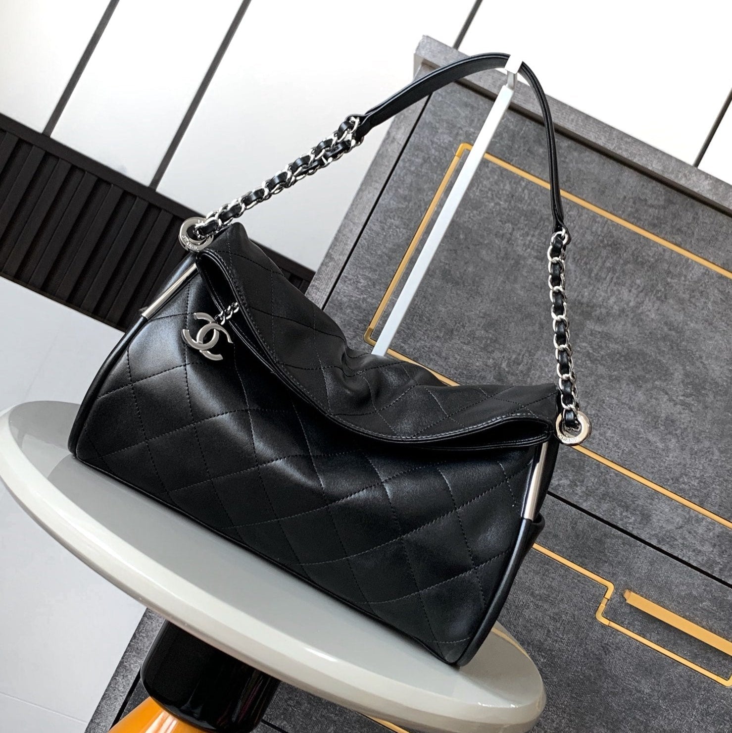 MATELASSÉ HANDBAG 20 IN BLACK LAMBSKIN