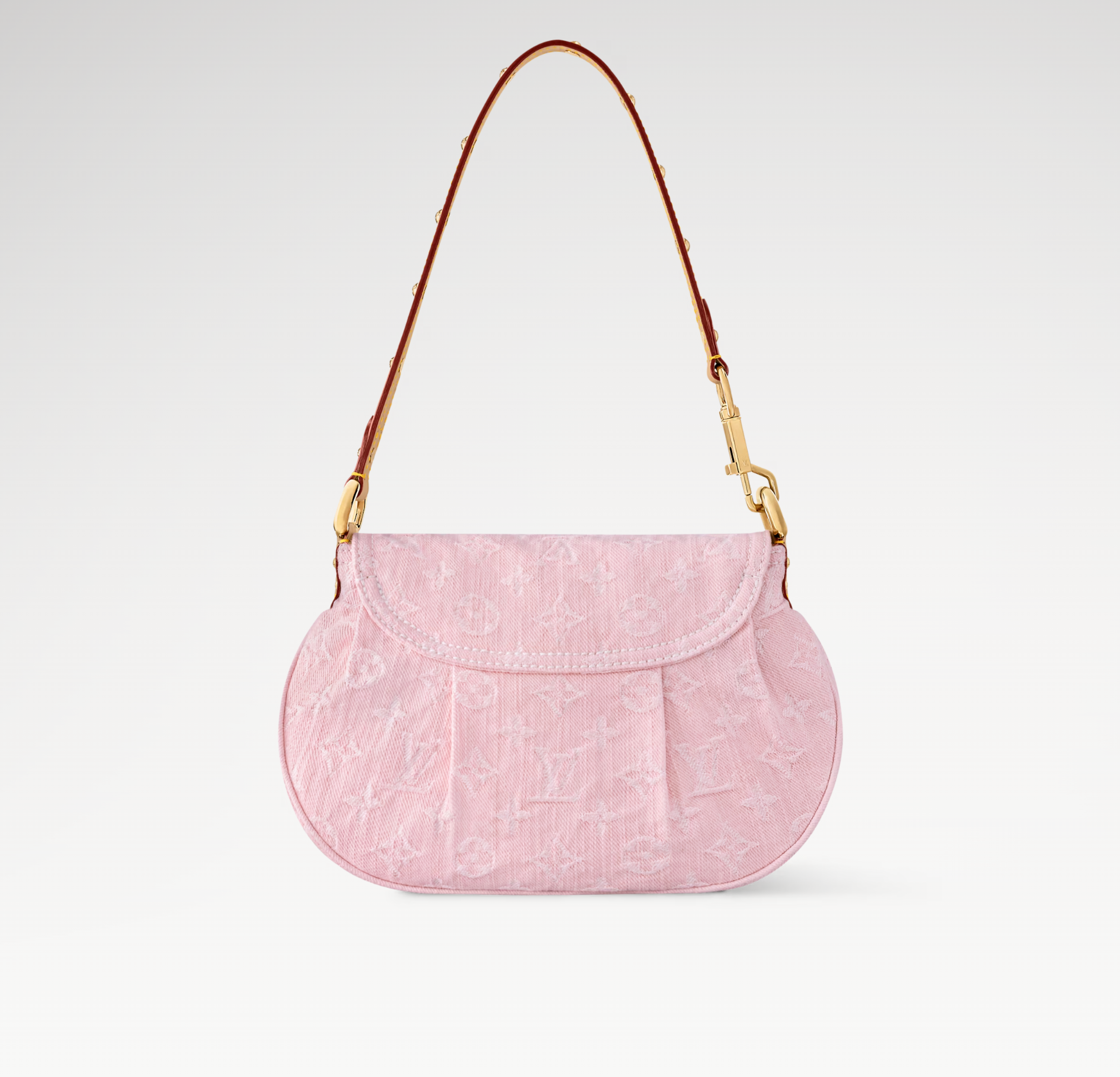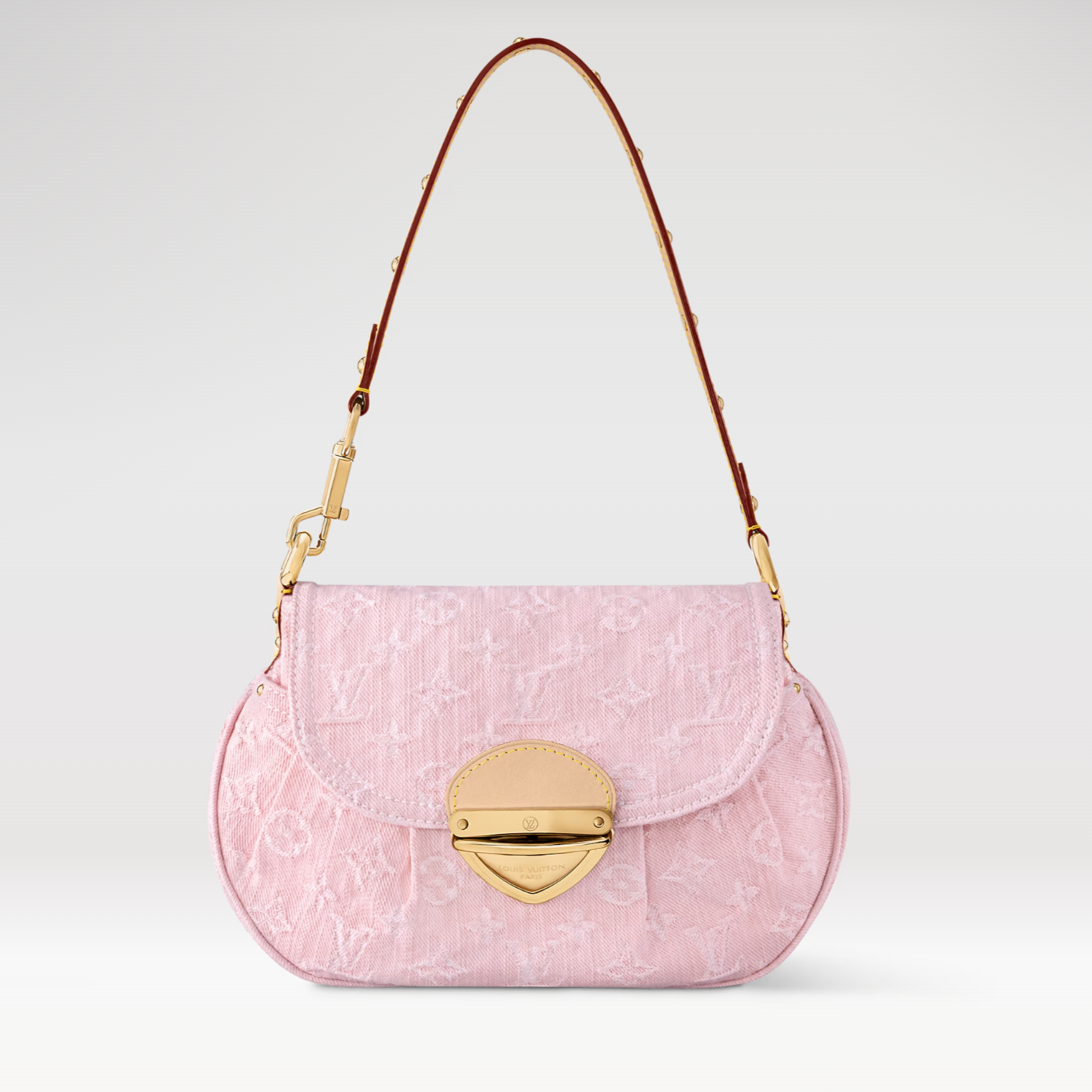 SUNSET 27 IN WASHED PINK MONOGRAM DENIM GOLD BUCKLE
