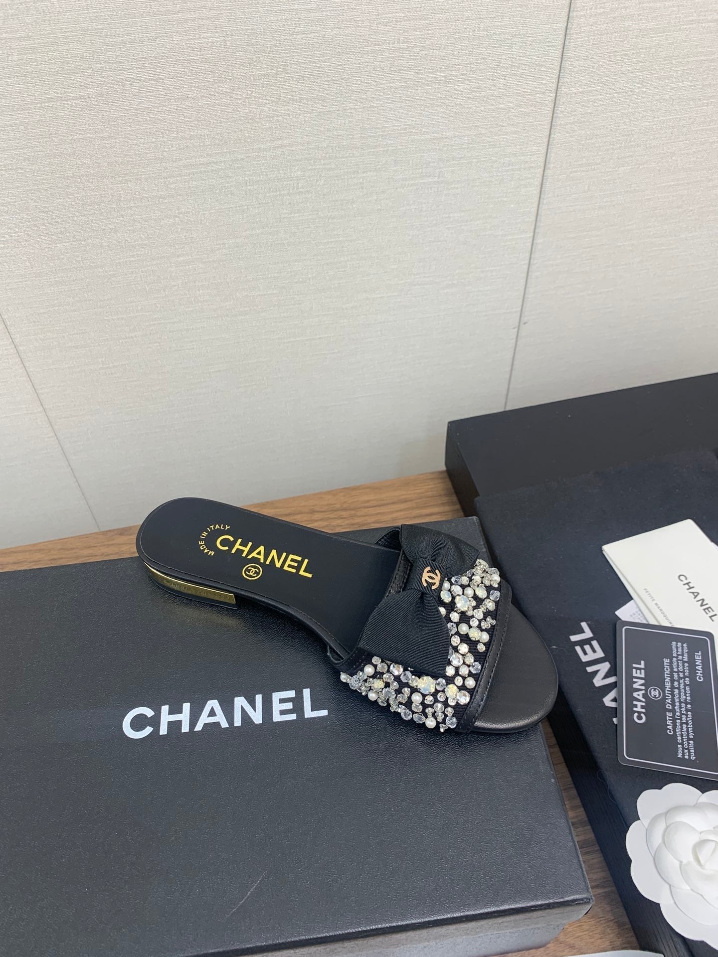BOW SLIPPERS IN BLACK LAMBSKIN WITH RHINESTONES