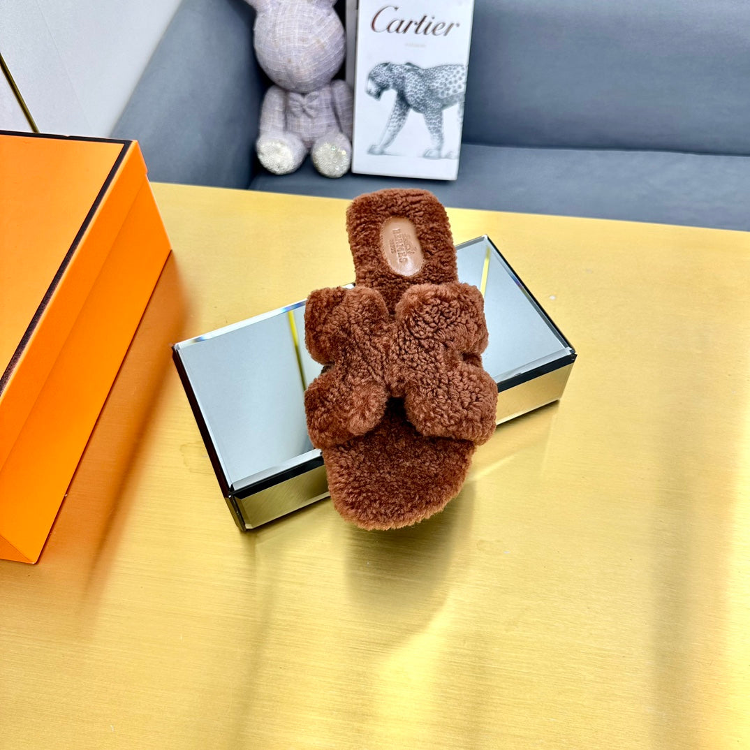 ORAN SHEARLING SANDALS UMBER BROWN