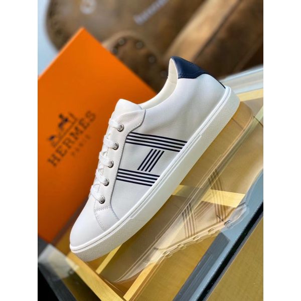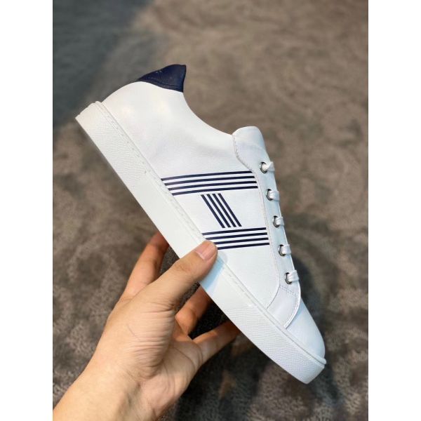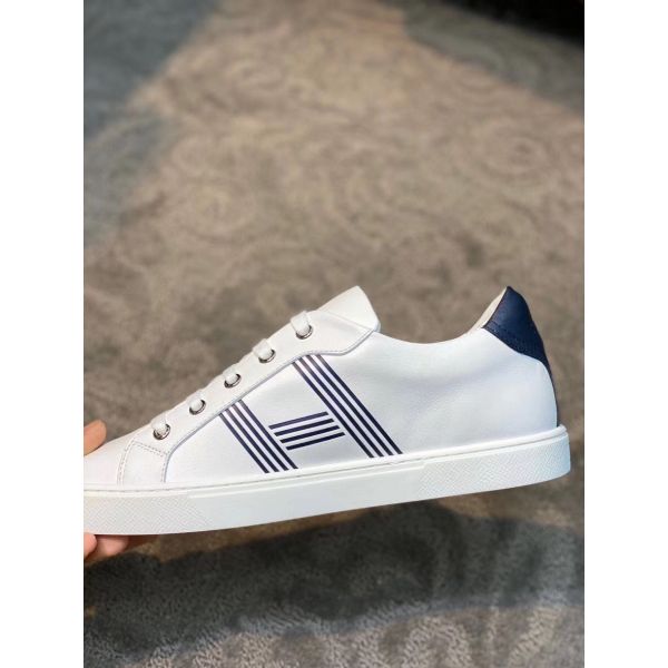 HERM Men's Avantage Sneakers In White/Blue Calfskin