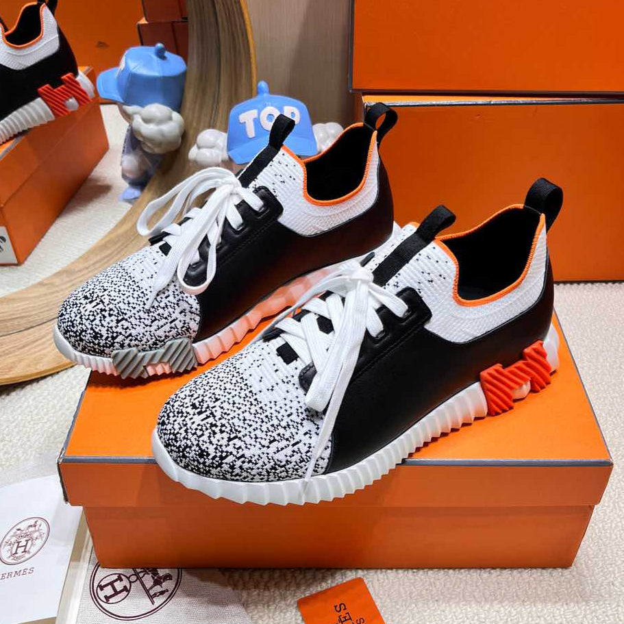 BOUNCING SNEAKER IN WHITE GRAPHIC MESH AND BRONZE BROWN CALFSKIN