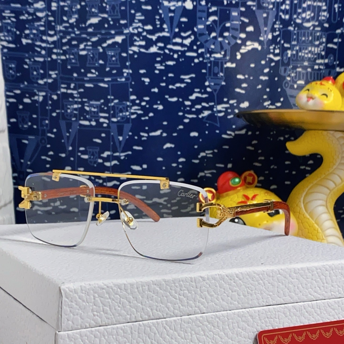 PANTHÈRE SQUARE FRAME SUNGLASSES 559671 IN METAL AND WOODEN