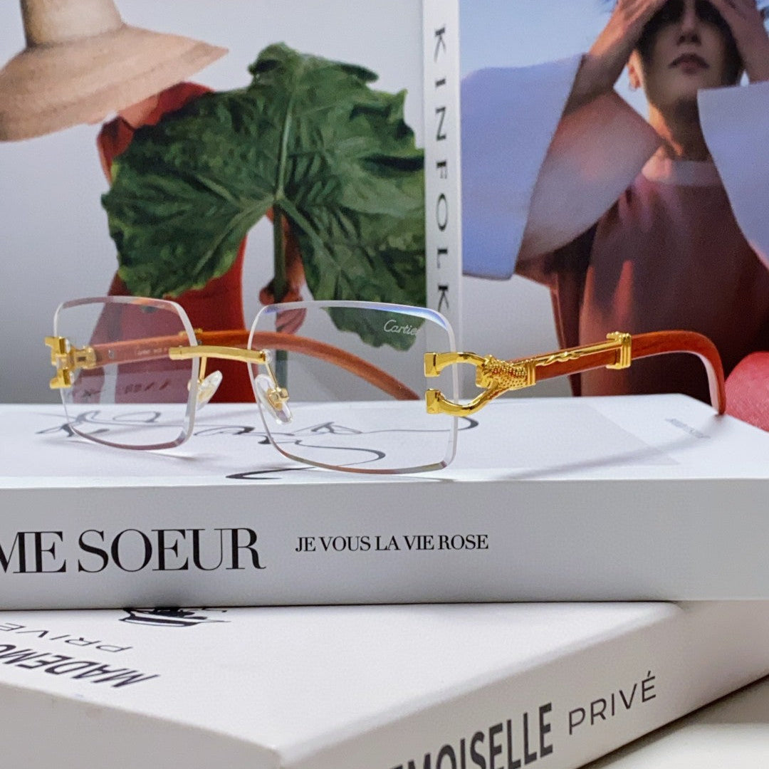 PANTHÈRE RECTANGULAR FRAME SUNGLASSES 555891 IN METAL AND WOODEN
