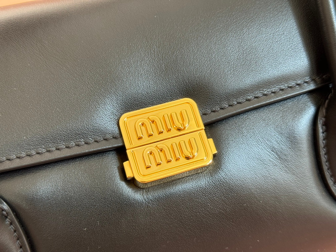 BEAU TOP HANDLE BAG 28 IN BLACK GLOSSY CALFSKIN GOLD HARDWARE