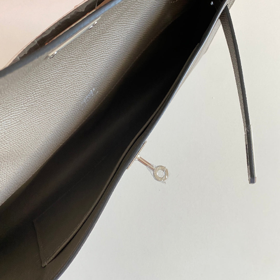 KELLY CUT 31 IN WOOD BROWN CALFSKIN WITH SILVER HARDWARE