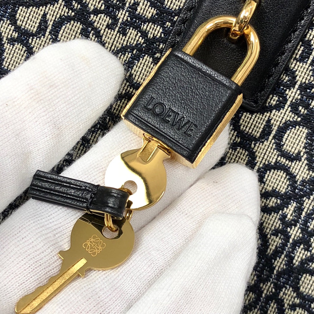 LOE AMAZONA 28 BAG IN BLACK CALFSKIN AND BEIGE MONOGRAM FABRIC
