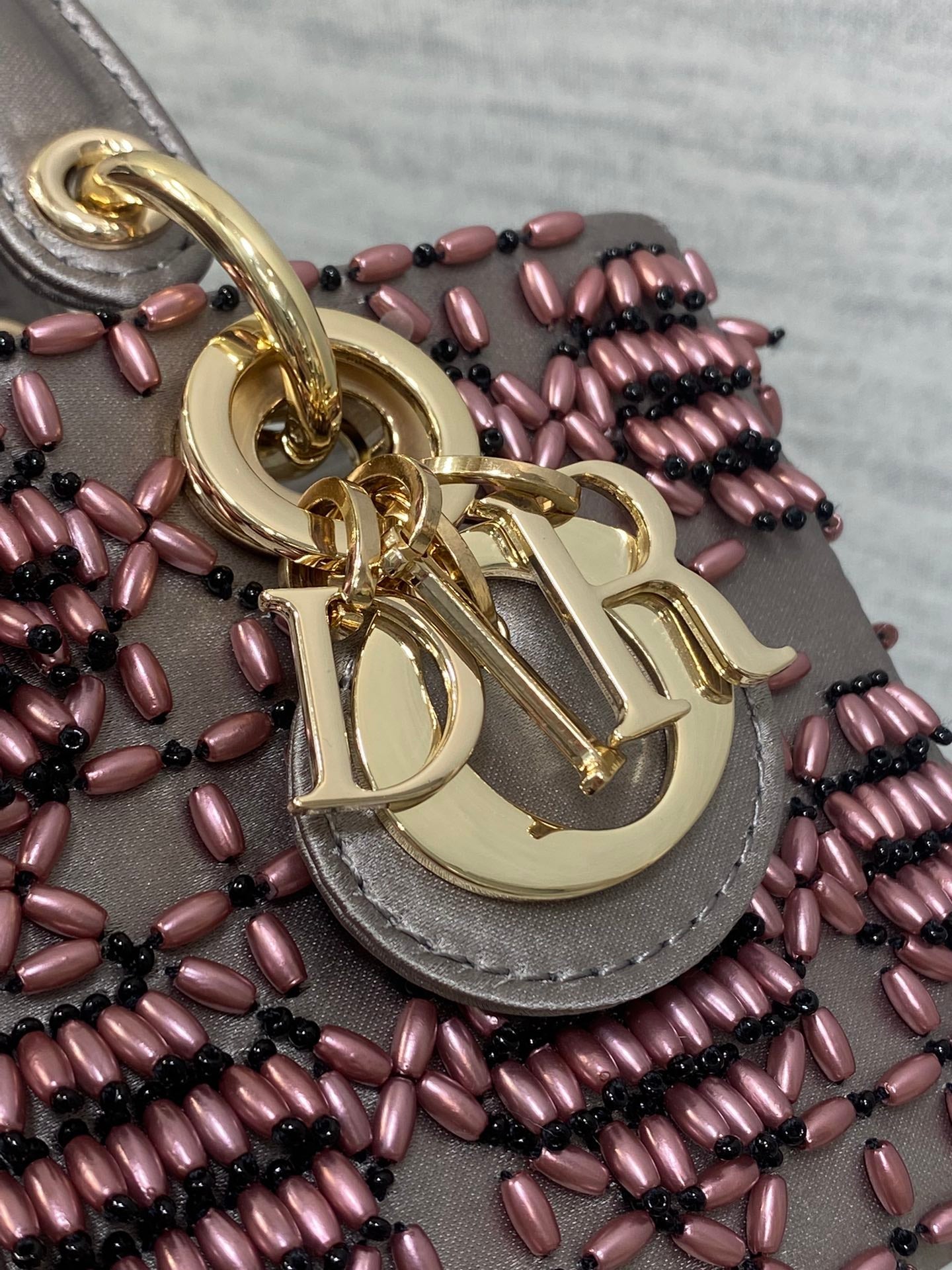 MINI LADY BAG 16 IN WENGE BROWN SATIN AND CALFSKIN WITH BEADED DESIGN