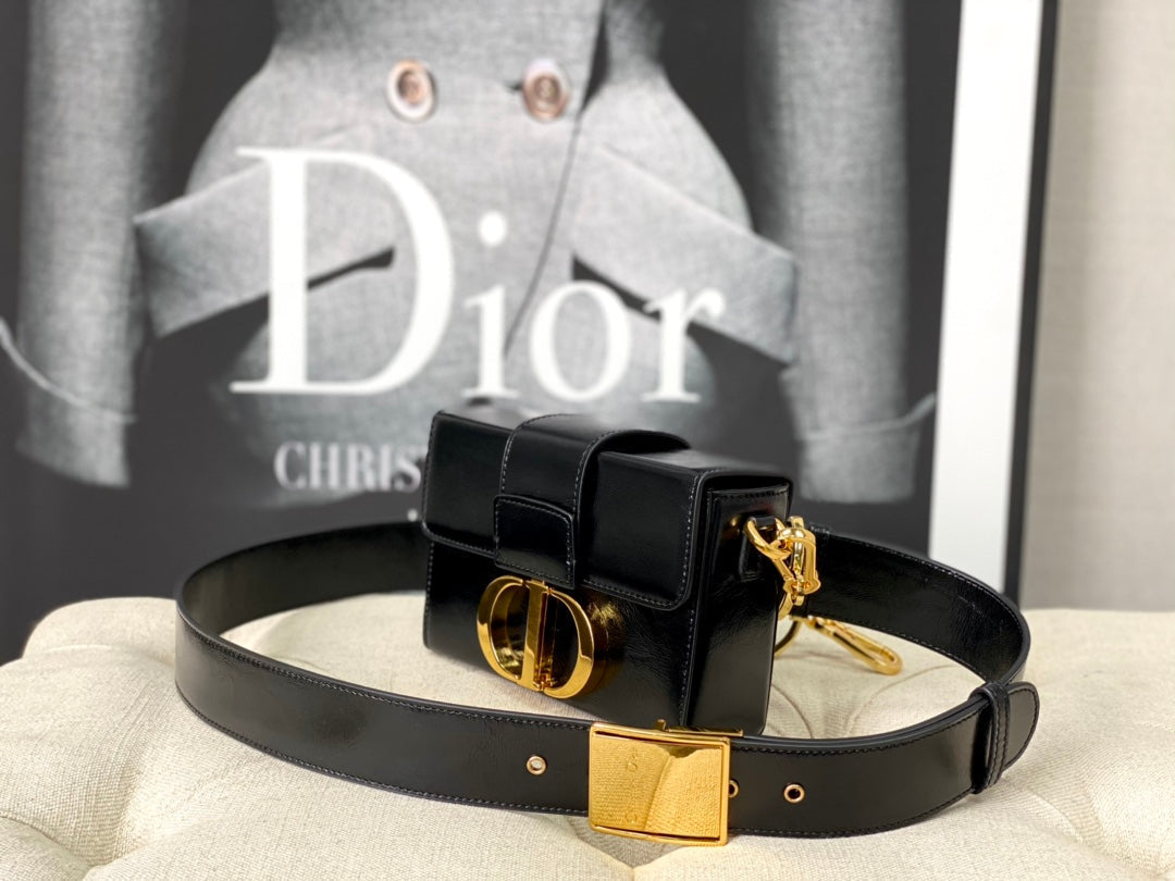 MONTAIGNE 19 HANDBAG IN BLACK CALFSKIN