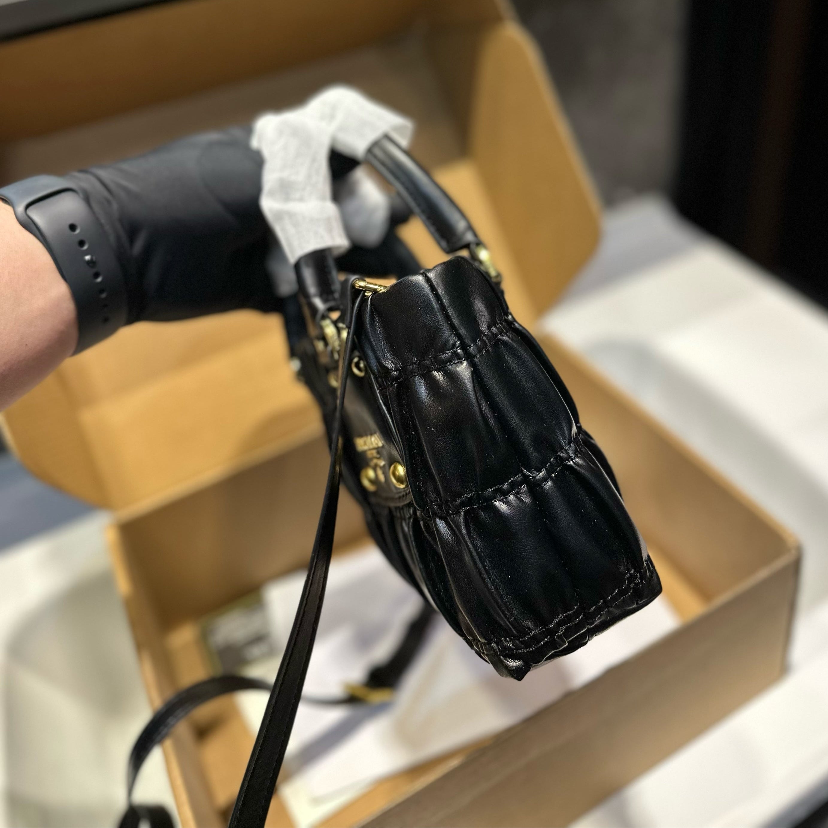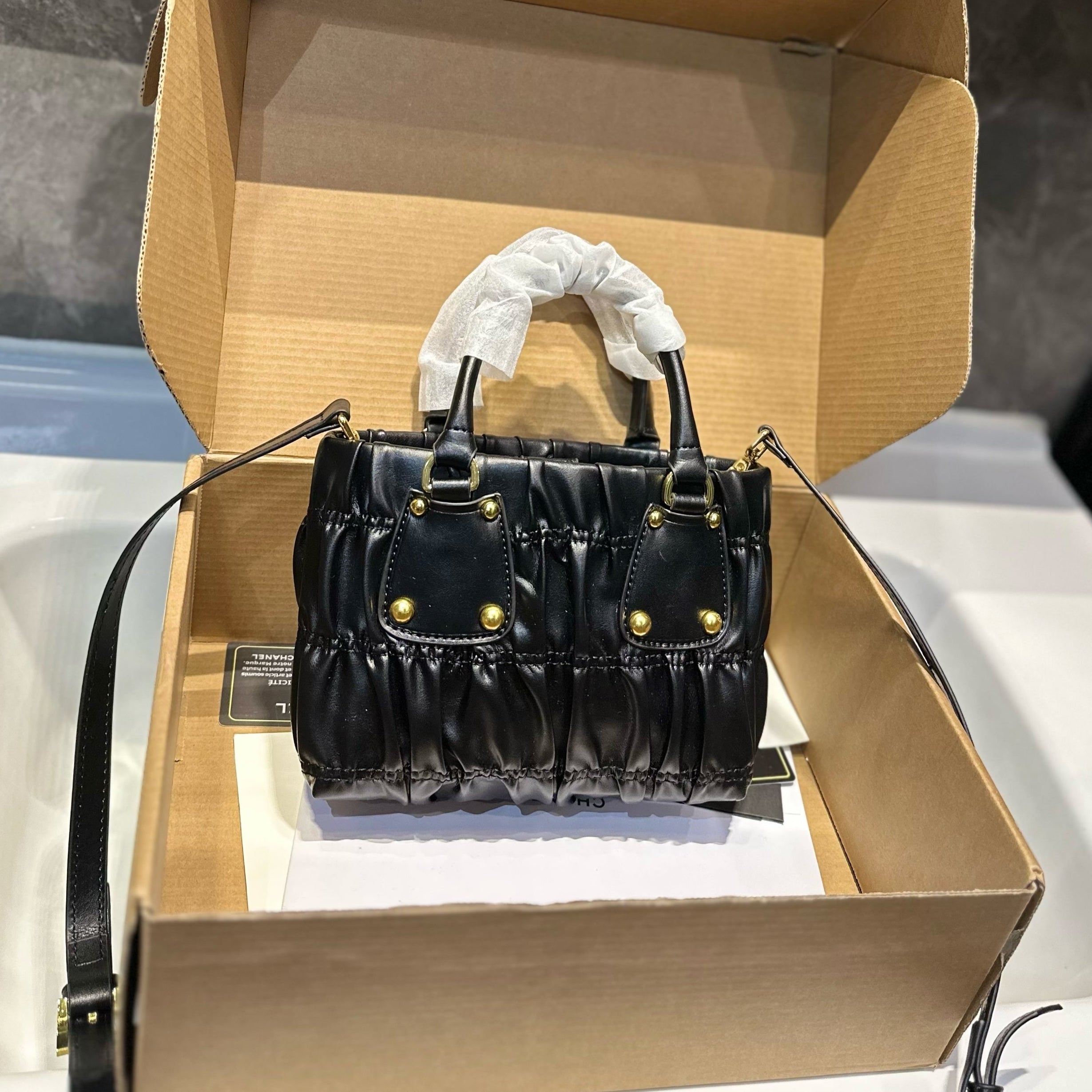 - RUCHED TOP HANDLE BAG 19 IN BLACK SAFFIANO LEATHER