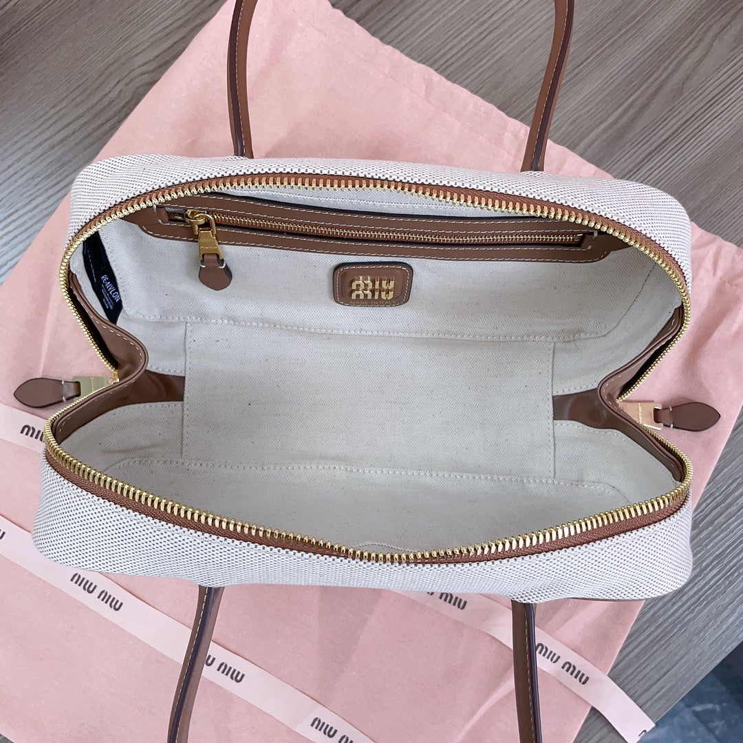 BOWLING BAG 28 IN WHITE CANVAS AND BROWN CALFSKIN TRIM