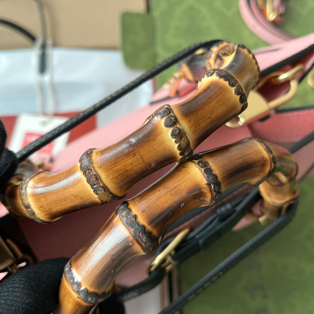 DIANA MEDIUM TOTE BAG 27 IN PINK CALFSKIN BAMBOO HANDLES