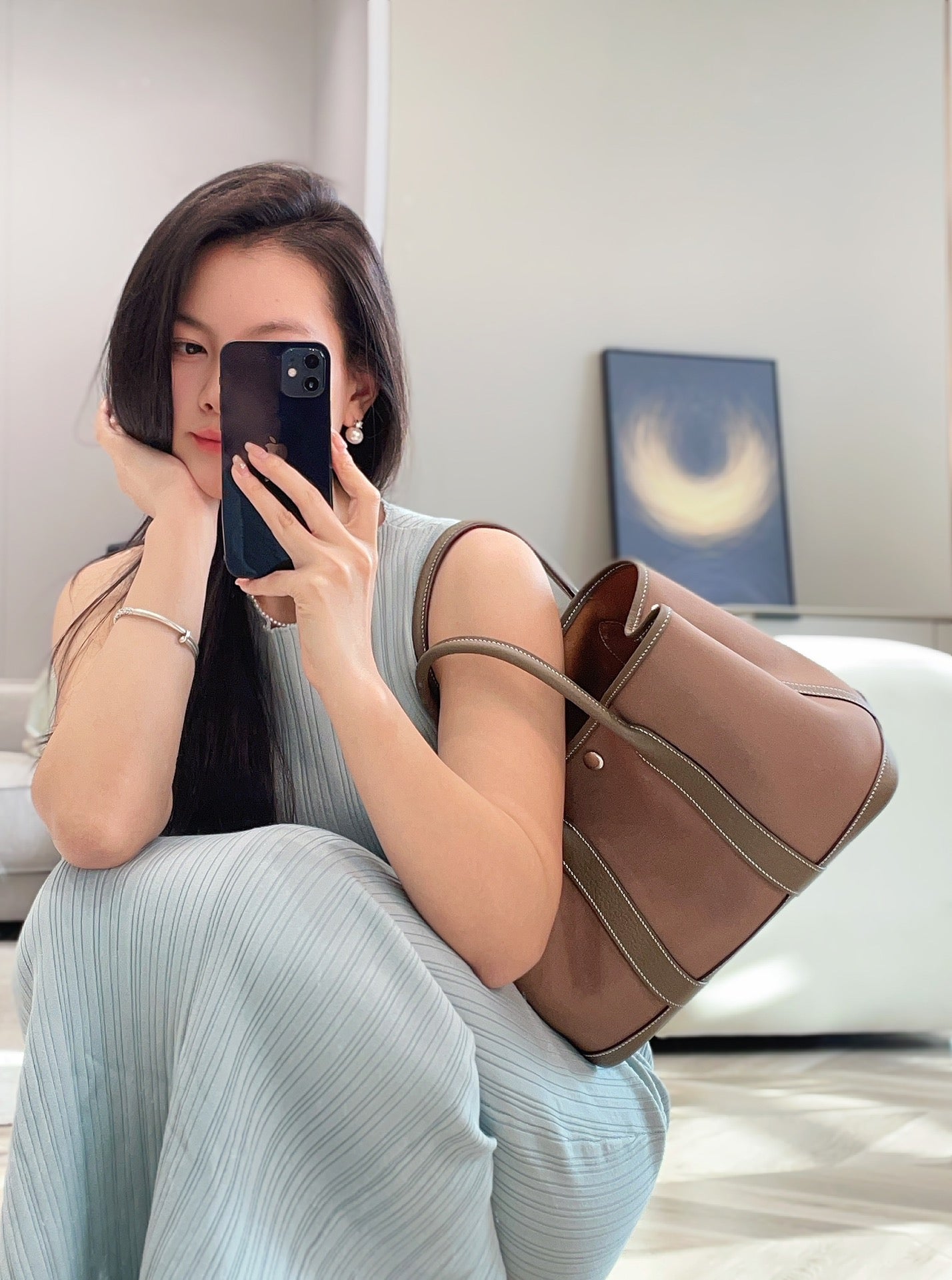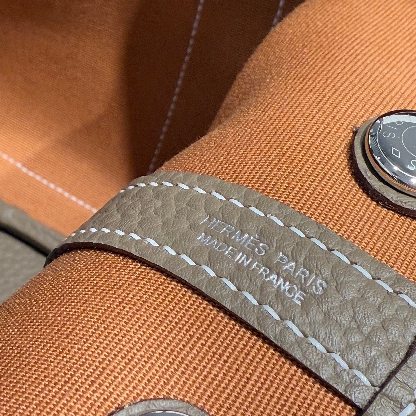 • GARDEN PARTY 30CM IN BROWN TOILETS COTTON CANVAS AND TOGO ETOUPE CALFSKIN
