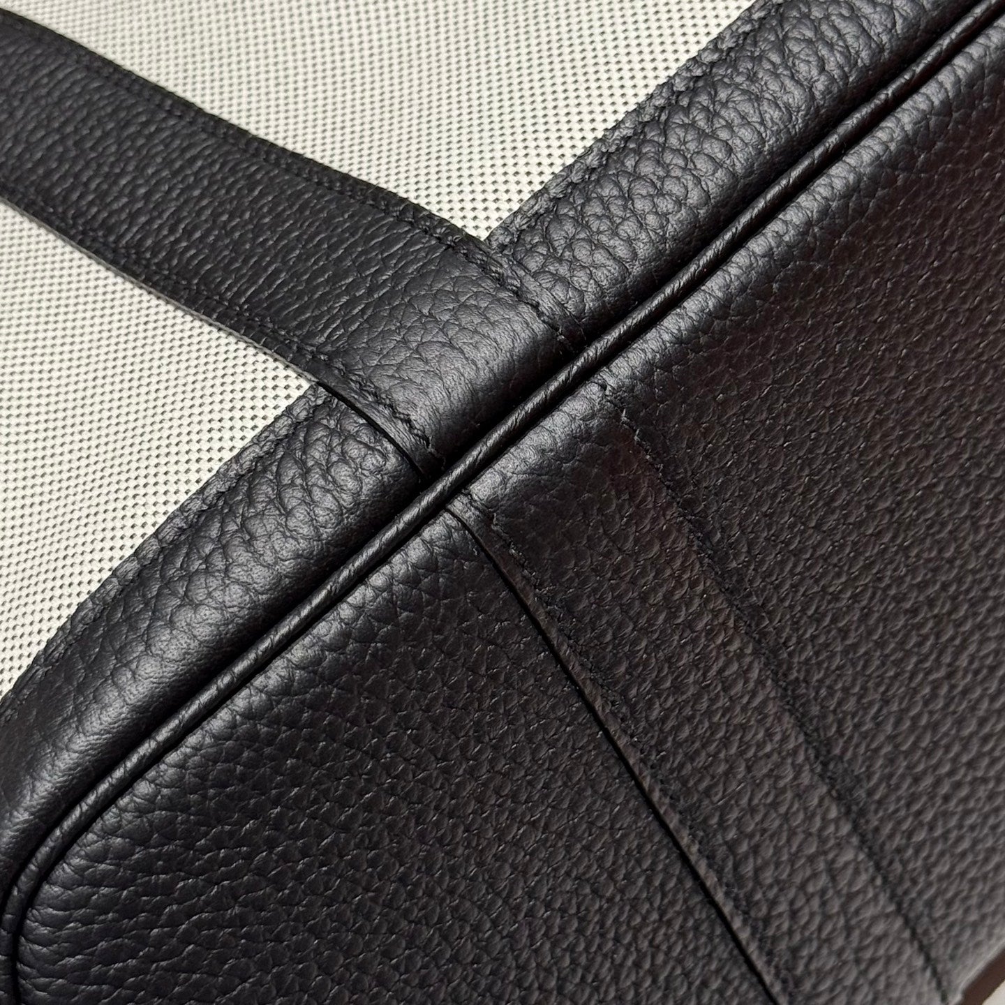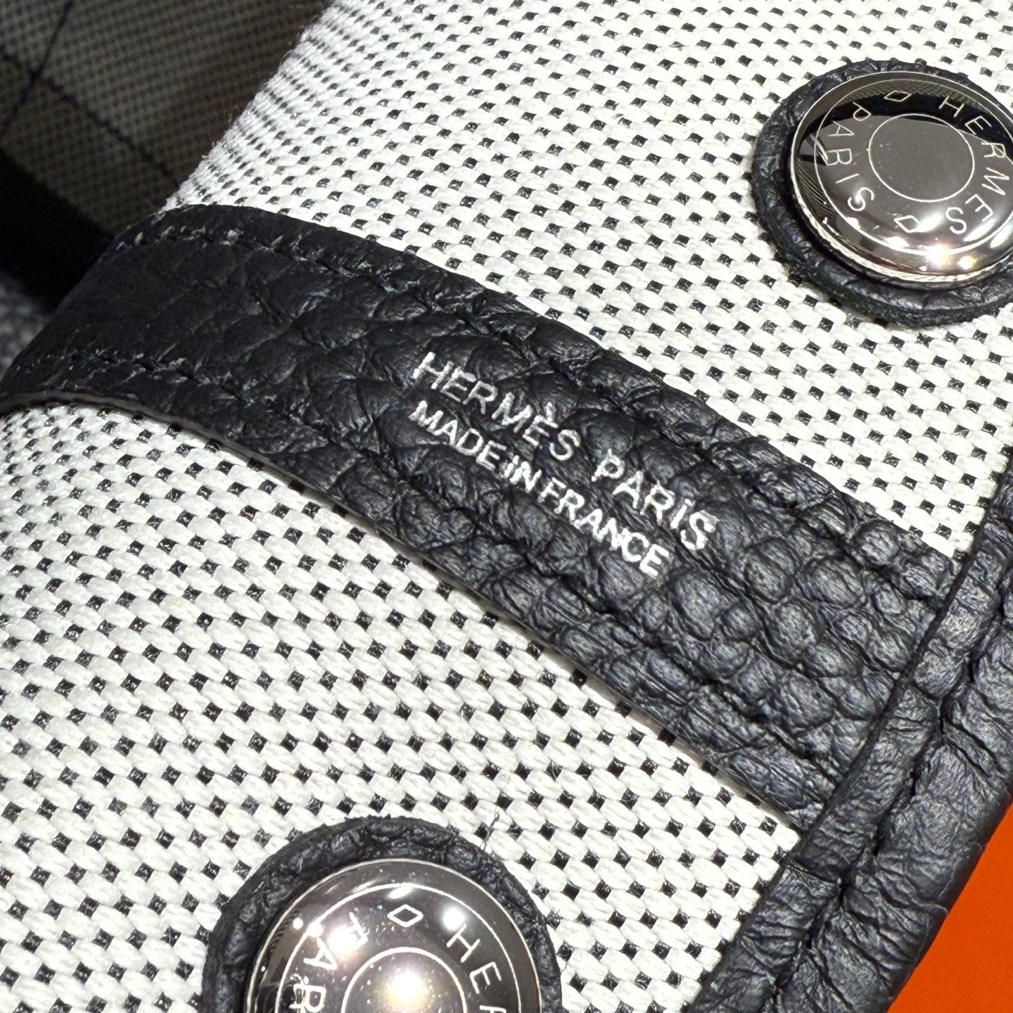 • GARDEN PARTY 30CM IN WHITE TOILETS COTTON CANVAS AND BLACK CALFSKIN