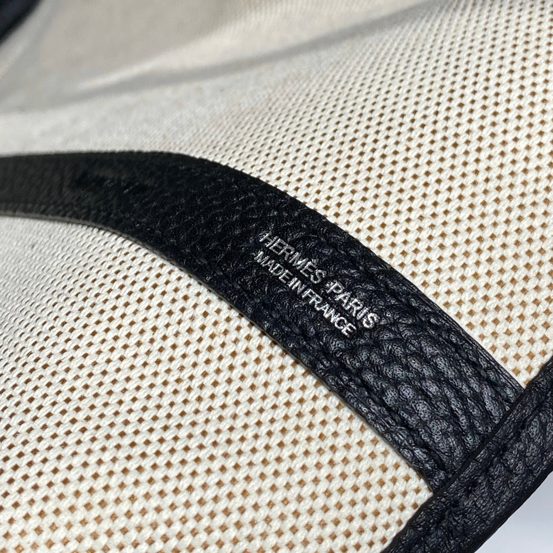 • GARDEN PARTY 36 IN BEIGE AND BLACK TOILE H CANVAS BLACK CALFSKIN HORSE TACK SKETCH PRINT