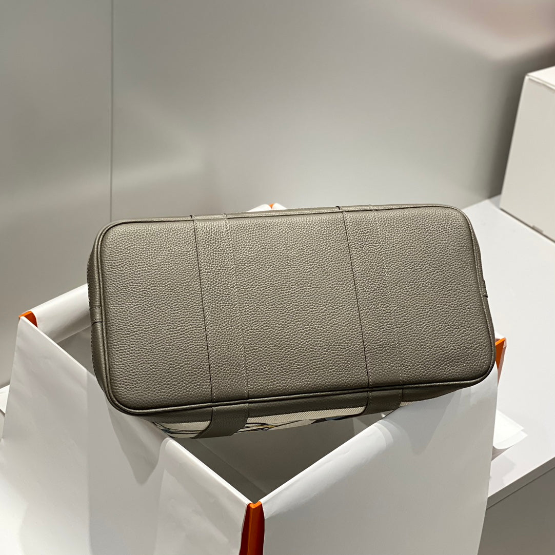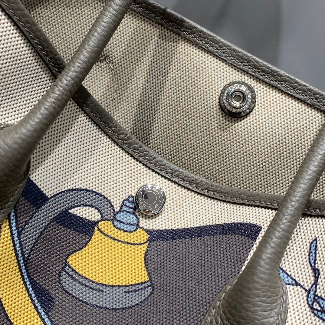 GARDEN PARTY 36 IN IVORY YELLOW BLUE TOILE H CANVAS ETOUPE CALFSKIN EQUESTRIAN HARNESS PRINT